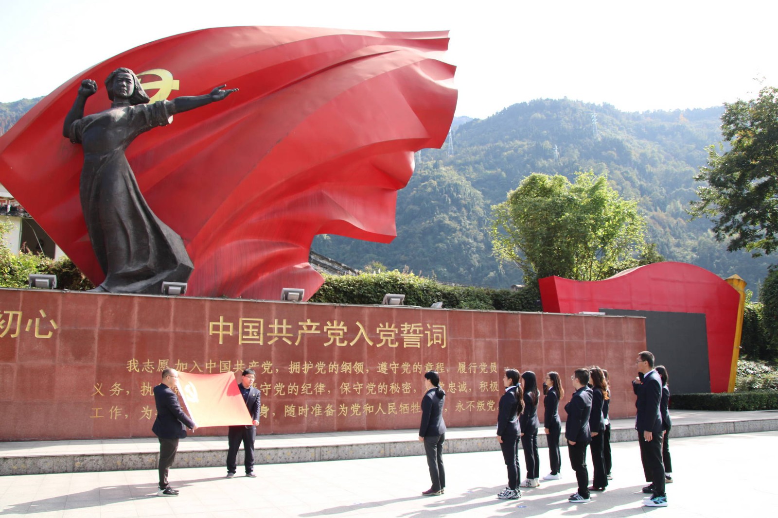 在漩口中學(xué)遺址,面對(duì)著樓宇廢墟和屹立不倒的國(guó)旗,參加活動(dòng)人員為在大地震中不幸遇難的同胞和在抗震救災(zāi)中英勇捐軀的英雄悼念、默哀。在映秀震中紀(jì)念館,通過(guò)還原的視頻畫面、祥實(shí)的記錄和資料,大家感受著在黨領(lǐng)導(dǎo)下抗震救災(zāi)、災(zāi)后重建、災(zāi)區(qū)振興的偉大奇跡。在家國(guó)情懷廣場(chǎng),金晶帶領(lǐng)全體黨員重溫入黨誓詞,感悟共產(chǎn)黨員沖在一線、用生命守護(hù)生命的初心。