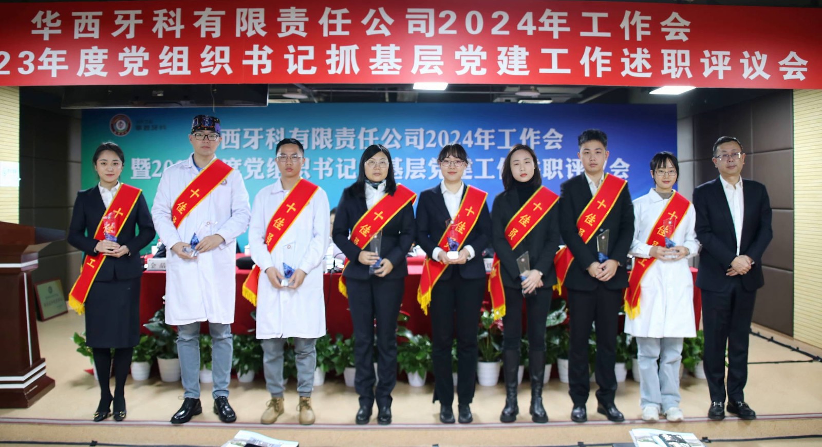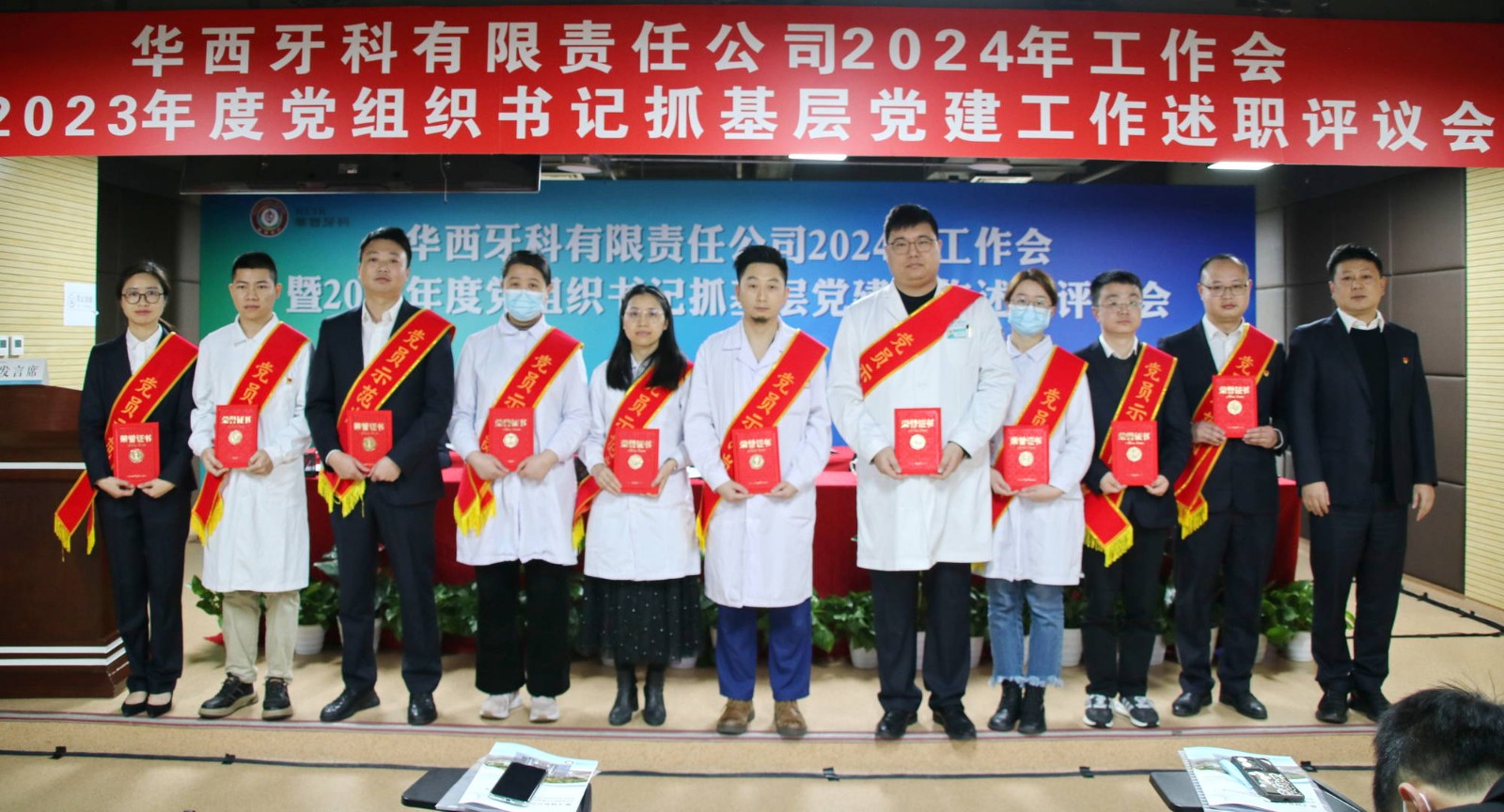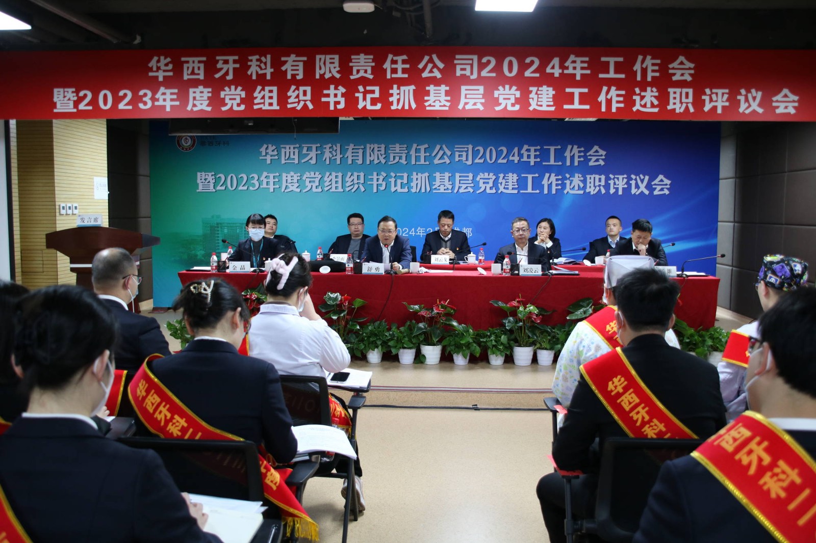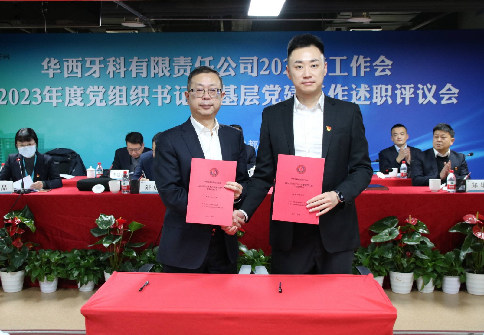 會議書面?zhèn)鬟_(dá)了近期全國全省安全生產(chǎn)會議精神。華西牙科班子成員依次宣讀了表彰文件,對華西牙科信息宣傳先進(jìn)單位、優(yōu)秀講師、華西牙科本部先進(jìn)部門、管理能手、優(yōu)秀員工、華西牙科黨員示范崗、十佳員工、華西牙科“四項人才”進(jìn)行表彰并頒發(fā)了榮譽證書。華西牙科黨委書記、董事長劉凌云與子公司負(fù)責(zé)人代表簽署了《華西牙科2024年度目標(biāo)責(zé)任書》、《安全生產(chǎn)環(huán)境保護(hù)工作目標(biāo)責(zé)任書》。隨后,通過“一述一評”的方式,華西牙科各子公司進(jìn)行2023年工作報告暨黨組織書記抓基層黨建工作述職,劉凌云董事長逐一點評,與會人員對述職同志抓基層黨建工作情況進(jìn)行民主評議,對黨總支、黨支部的日常工作進(jìn)行評定。