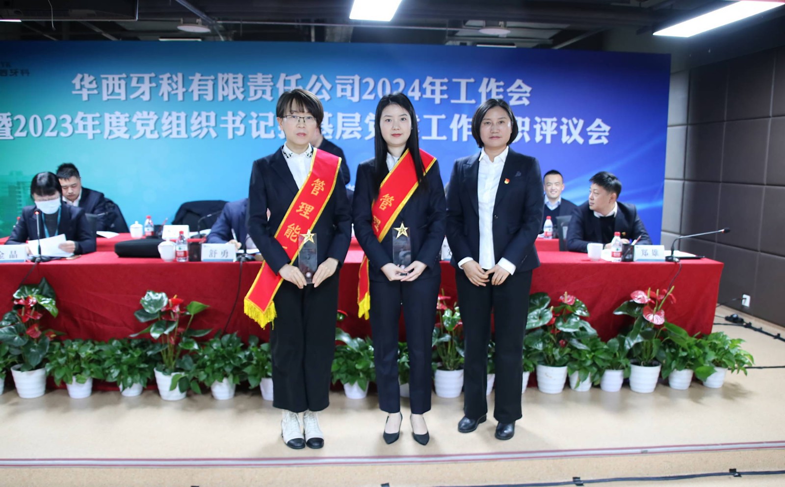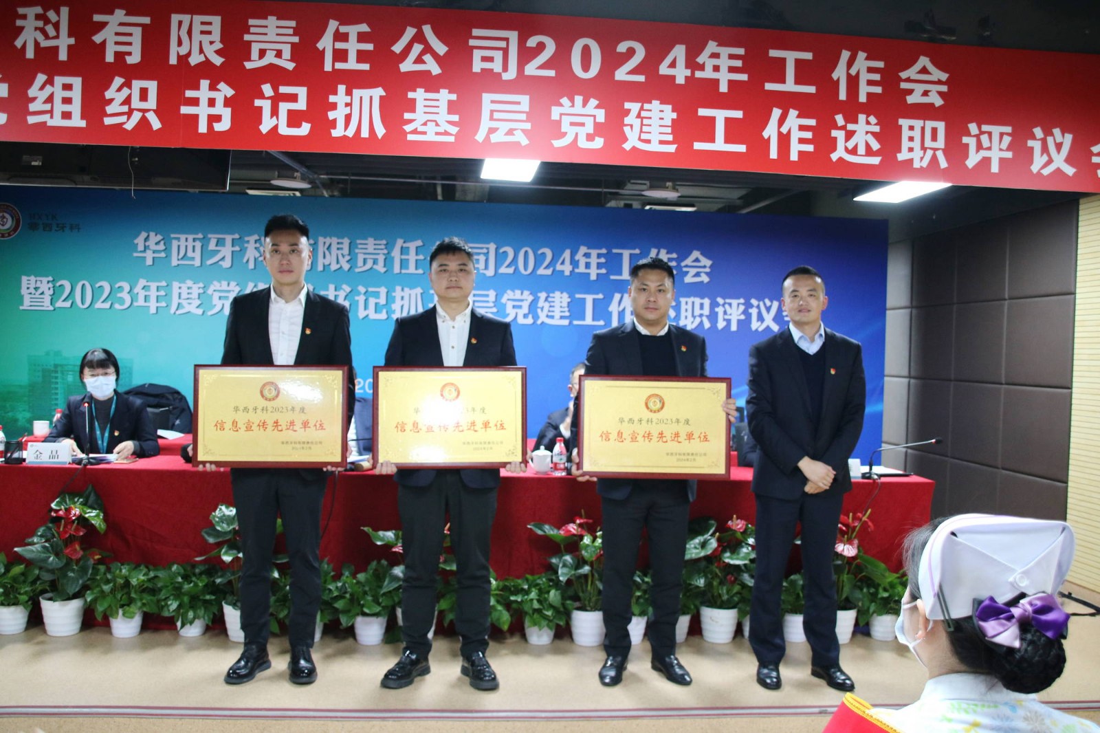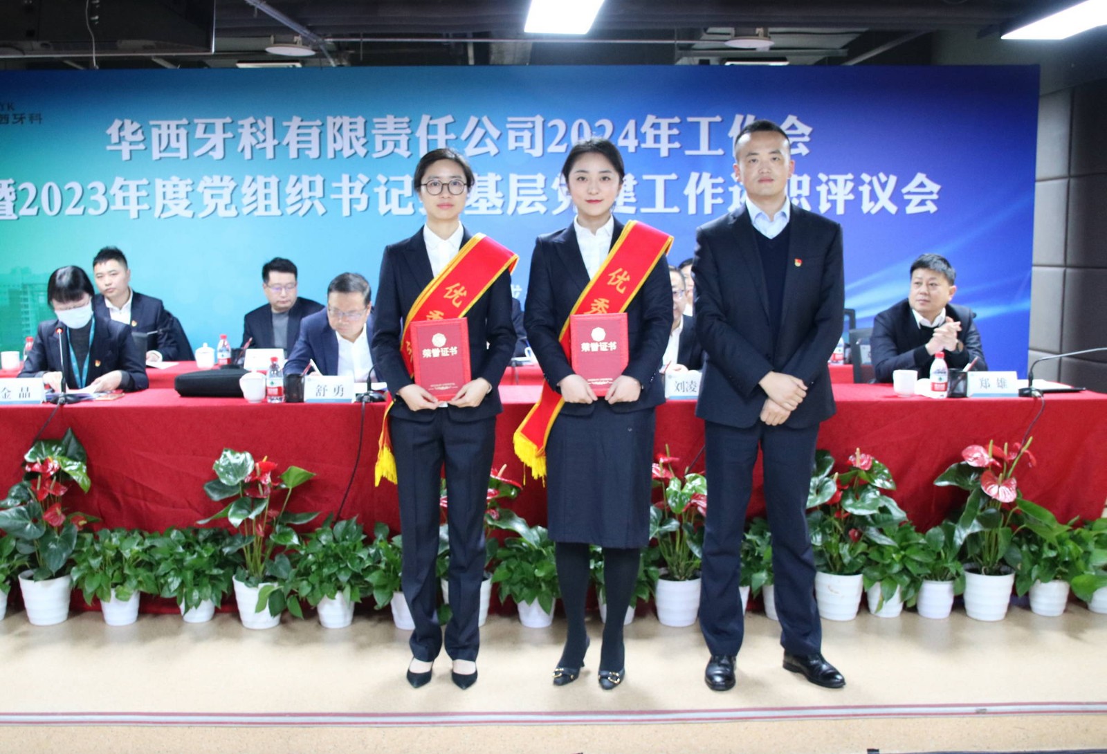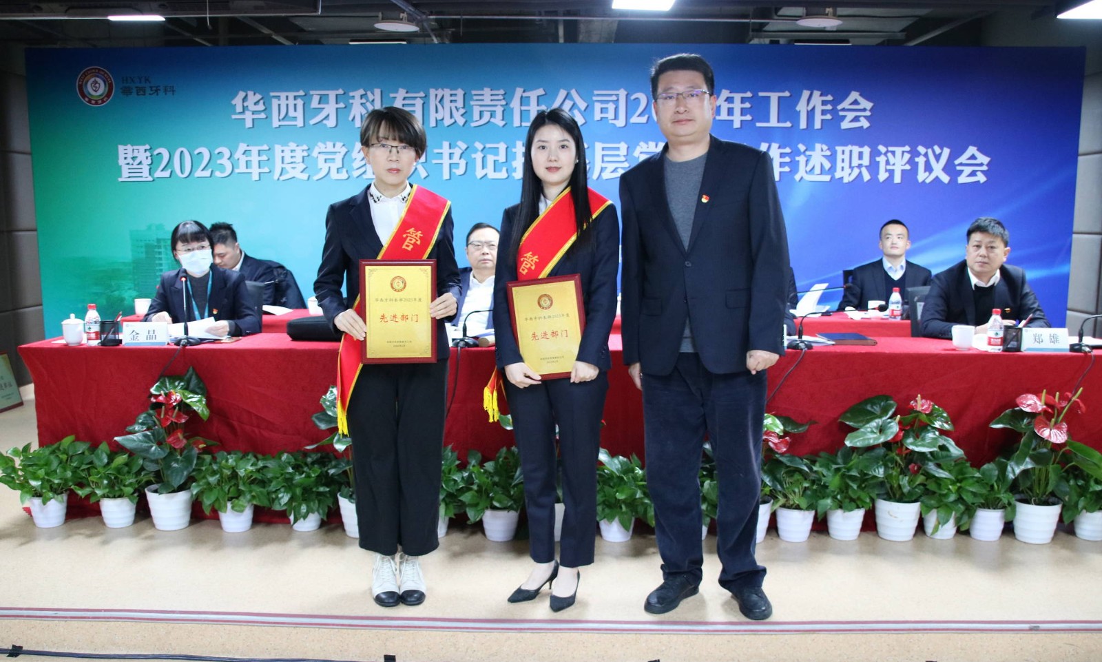 會議書面?zhèn)鬟_(dá)了近期全國全省安全生產(chǎn)會議精神。華西牙科班子成員依次宣讀了表彰文件,對華西牙科信息宣傳先進(jìn)單位、優(yōu)秀講師、華西牙科本部先進(jìn)部門、管理能手、優(yōu)秀員工、華西牙科黨員示范崗、十佳員工、華西牙科“四項人才”進(jìn)行表彰并頒發(fā)了榮譽證書。華西牙科黨委書記、董事長劉凌云與子公司負(fù)責(zé)人代表簽署了《華西牙科2024年度目標(biāo)責(zé)任書》、《安全生產(chǎn)環(huán)境保護(hù)工作目標(biāo)責(zé)任書》。隨后,通過“一述一評”的方式,華西牙科各子公司進(jìn)行2023年工作報告暨黨組織書記抓基層黨建工作述職,劉凌云董事長逐一點評,與會人員對述職同志抓基層黨建工作情況進(jìn)行民主評議,對黨總支、黨支部的日常工作進(jìn)行評定。