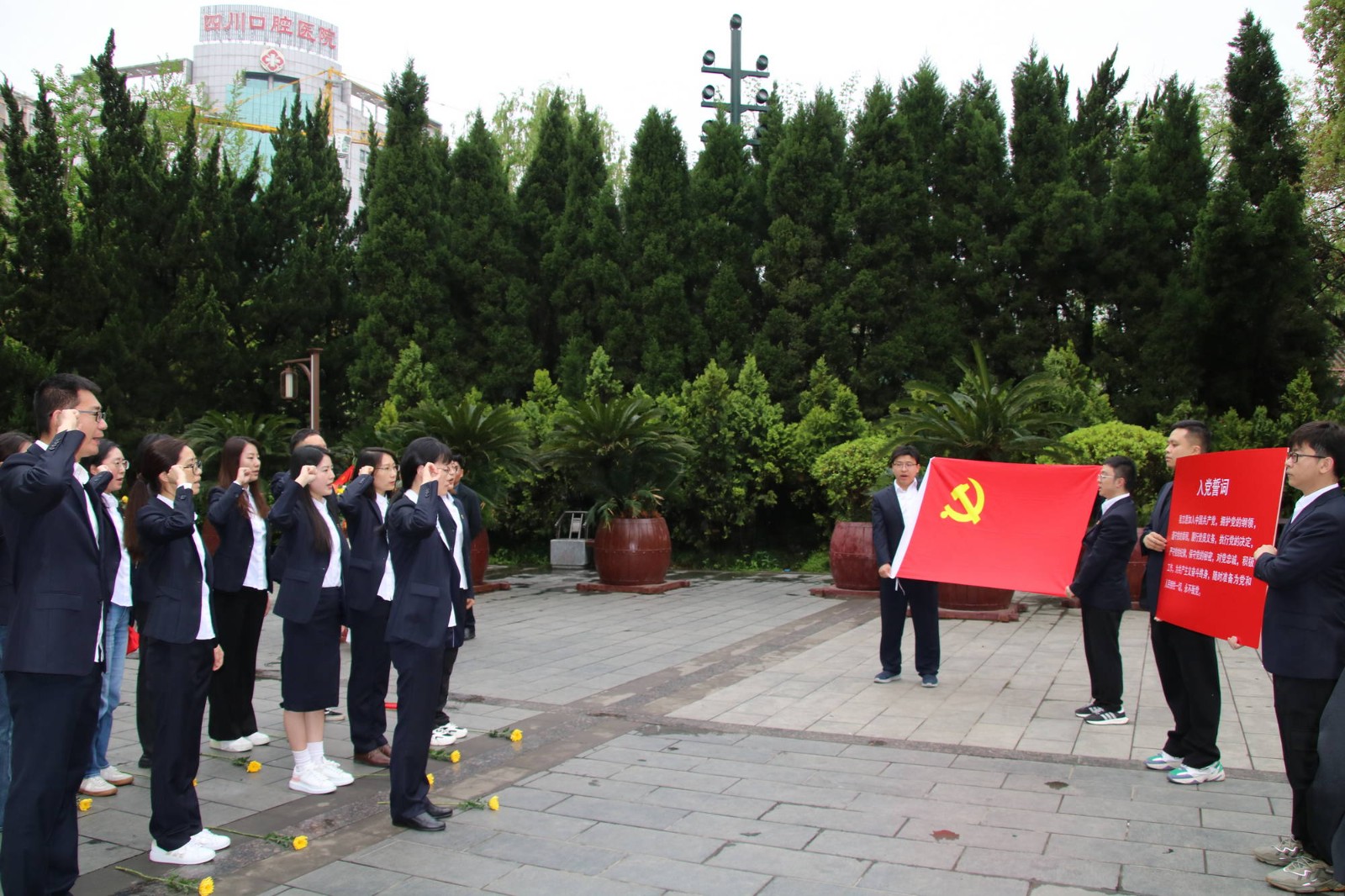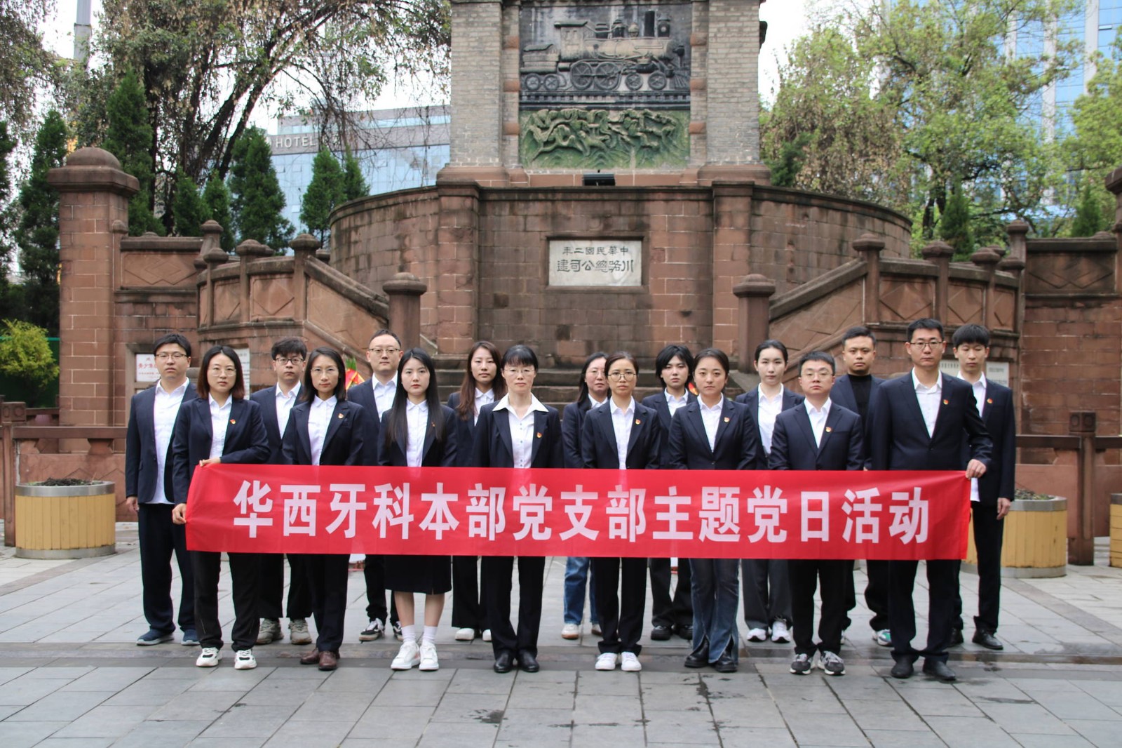 為緬懷革命先烈,弘揚愛國主義精神,4月3日上午,華西牙科本部黨支部、團支部共同開展了“銘記歷史憶英烈 崇尚英雄當先鋒”清明祭掃活動,本部黨員、入黨積極分子、團員青年共18人參加活動。華西牙科黨委副書記、工會主席金晶以普通黨員身份參加活動。