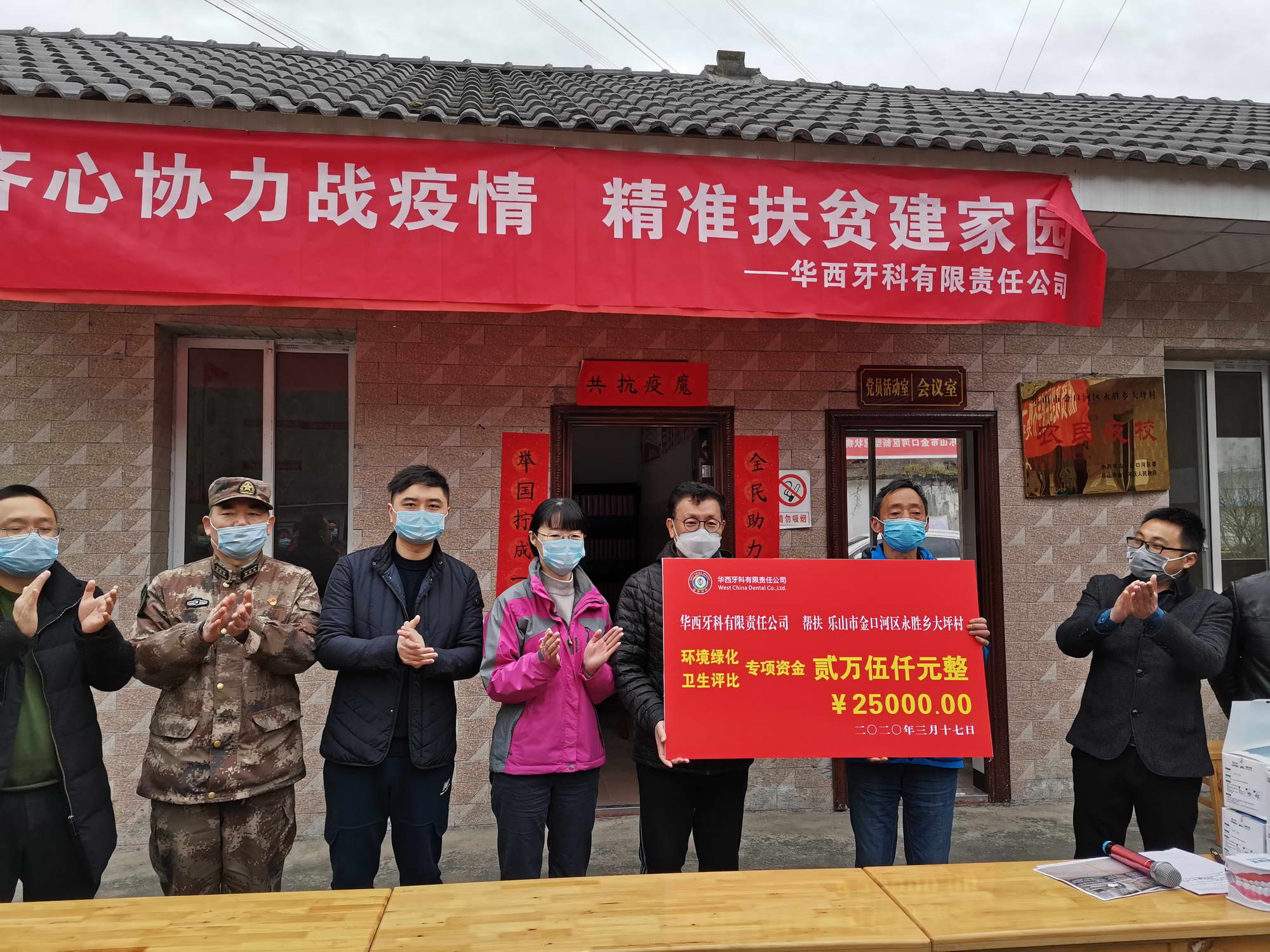 隨后,華西牙科對(duì)口幫扶活動(dòng)開始,本次活動(dòng)以“齊心協(xié)力戰(zhàn)疫情,精準(zhǔn)扶貧建家園”為主題,分別舉辦了大坪村環(huán)境美化及衛(wèi)生評(píng)比競賽活動(dòng),環(huán)境美化及衛(wèi)生評(píng)比頒獎(jiǎng)儀式和專項(xiàng)資金捐贈(zèng)儀式,以及新冠病毒預(yù)防及疫情期間的口腔保健知識(shí)講座。華西牙科向村民們送來了關(guān)懷和問候,并捐贈(zèng)防疫物資和幫扶資金2.5萬元。