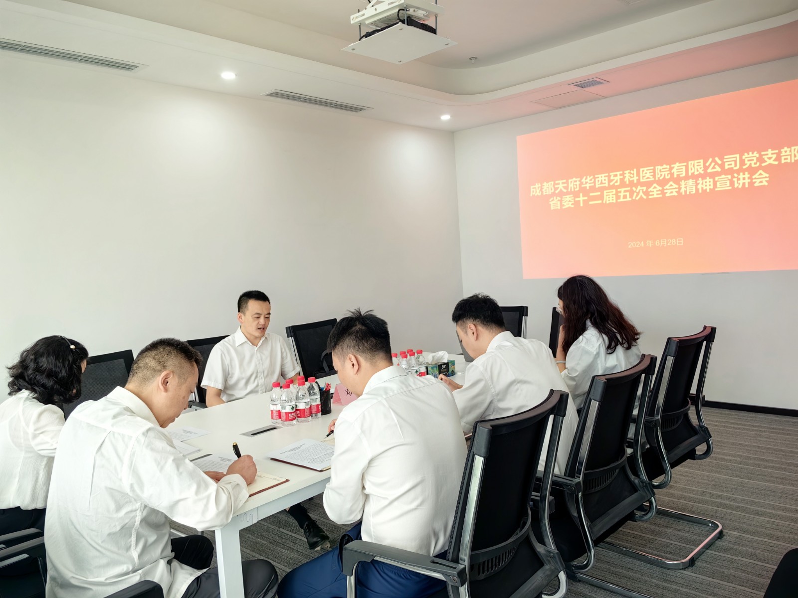 6月28日,華西牙科黨委委員、紀(jì)委書記鄧云斌赴天府華西牙科黨支部宣講省委十二屆五次全會精神,天府華西牙科黨支部書記、執(zhí)行董事、總經(jīng)理蘭吉及全體黨員參加會議。