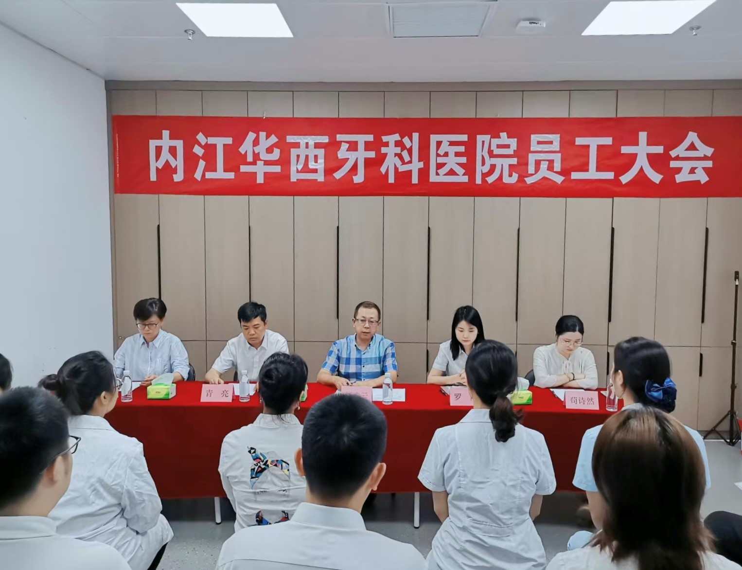 內(nèi)江華西牙科醫(yī)院領(lǐng)導(dǎo)班子成員、中層干部和全體員工參加會(huì)議。