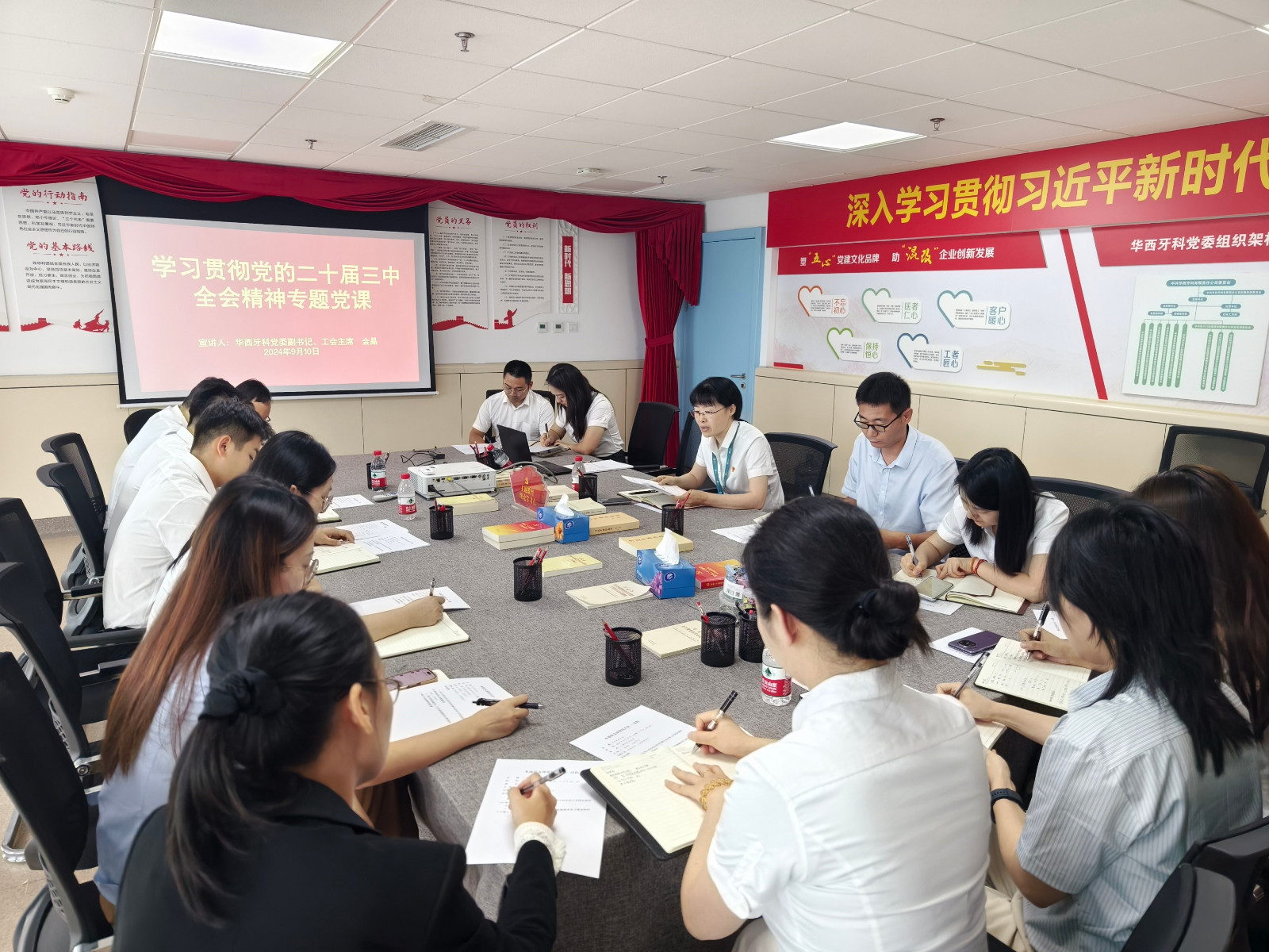 為進(jìn)一步深入學(xué)習(xí)貫徹黨的二十屆三中全會精神,9月10日下午,華西牙科黨委副書記、工會主席金晶在公司13樓黨員活動室宣講學(xué)習(xí)貫徹黨的二十屆三中全會精神并講授專題黨課。