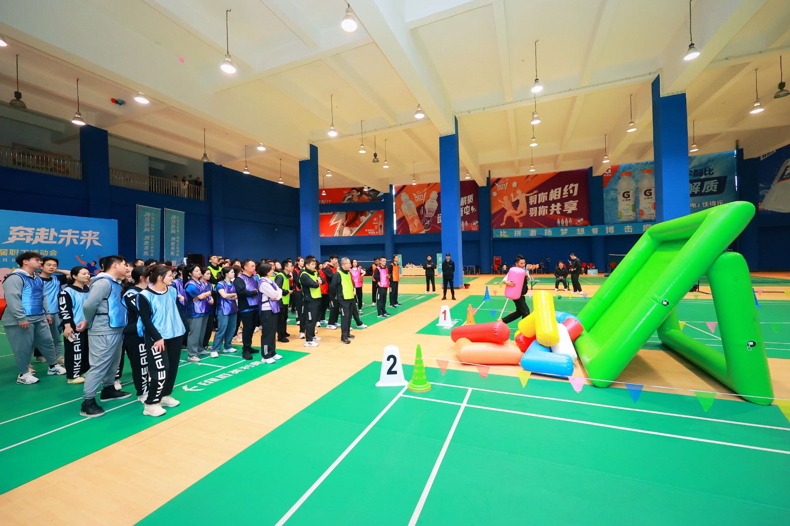 此次運動會設(shè)置了趣味運動、乒乓球和羽毛球三個項目,比賽過程中,參賽運動員們?nèi)σ愿?、以技會友,歡笑聲連綿不斷,喝彩聲此起彼伏,達到了加強體育鍛煉和增進集體友誼的良好效果。