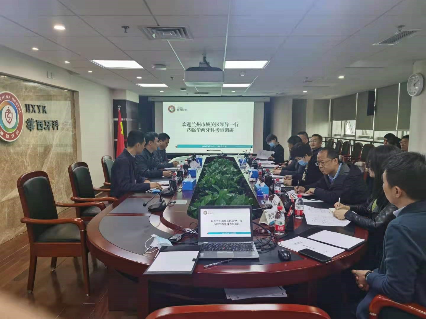4月11日下午,蘭州市城關(guān)區(qū)區(qū)委副書記、區(qū)長楊立嶺帶隊(duì)一行15人赴華西牙科考察調(diào)研,川投集團(tuán)黨委委員、副總經(jīng)理兼華西牙科黨委書記、董事長羅永平、華西牙科副總經(jīng)理兼四川口腔醫(yī)院董事長劉云戈及相關(guān)部門負(fù)責(zé)人陪同,英大匯通投資管理公司總經(jīng)理黃崇文等參加。
