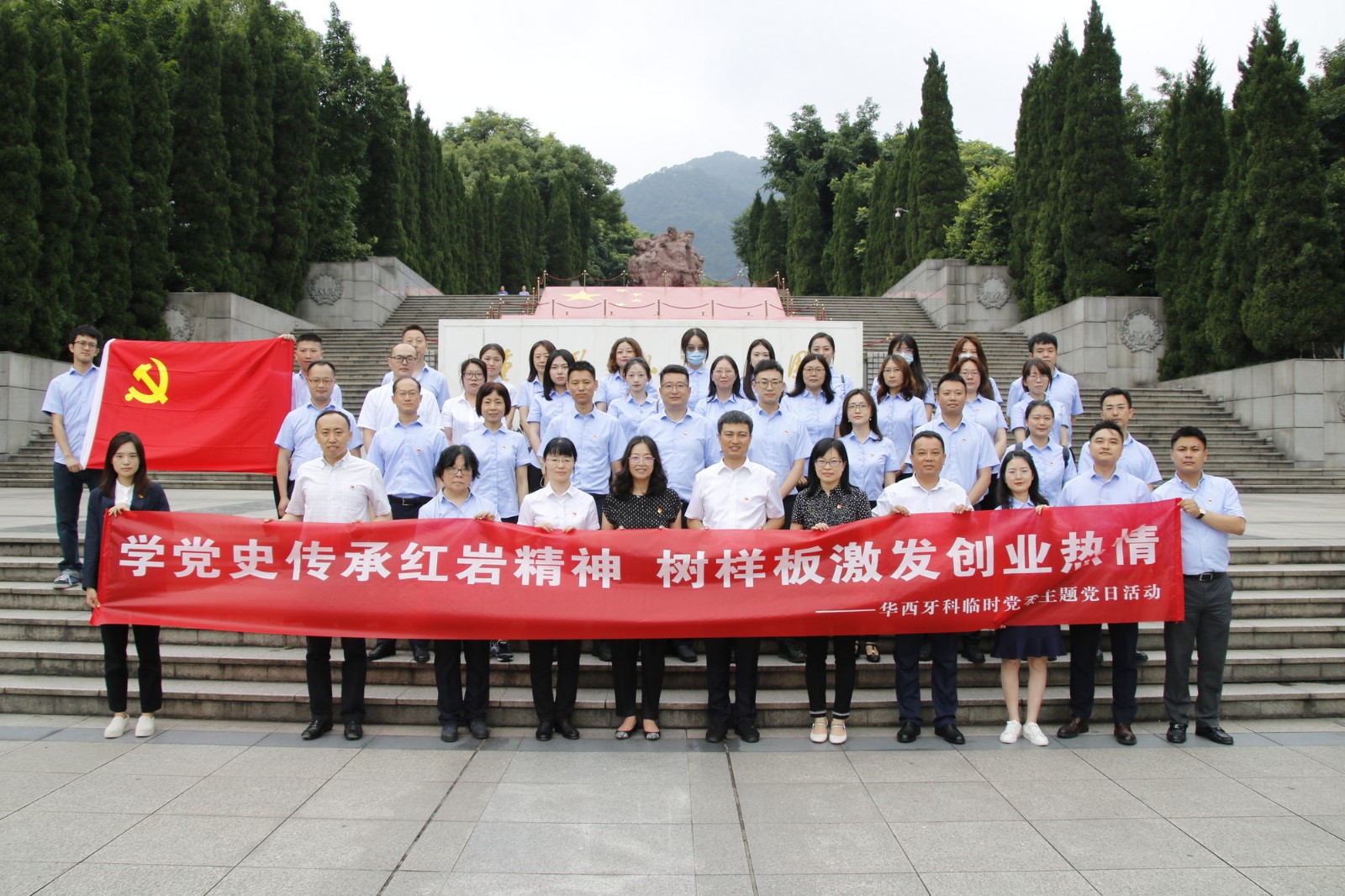 按照公司黨史學(xué)習(xí)教育安排,6月17日,華西牙科黨委組織黨員、入黨積極分子、員工代表,與股東單位負(fù)責(zé)同志一道走進(jìn)重慶白公館、紅巖魂陳列館、重慶華西牙科醫(yī)院開展“學(xué)黨史傳承紅巖精神 樹樣板激發(fā)創(chuàng)業(yè)熱情”黨史學(xué)習(xí)教育專題黨日活動(dòng)。川投集團(tuán)黨委委員、副總經(jīng)理兼華西牙科黨委書記、董事長羅永平,國壽成達(dá)董事總經(jīng)理兼華西牙科董事葉栩彪,資陽高新產(chǎn)促公司執(zhí)行董事、總經(jīng)理兼華西牙科監(jiān)事朱玲,華西牙科黨委副書記、紀(jì)委書記、職工董事金晶、黨委委員、董事、財(cái)務(wù)總監(jiān)王海帆、專家委副主任鄭立舸教授,重慶華西牙科醫(yī)院院長童冠雄、常務(wù)院長陸勇軍等參加活動(dòng)。