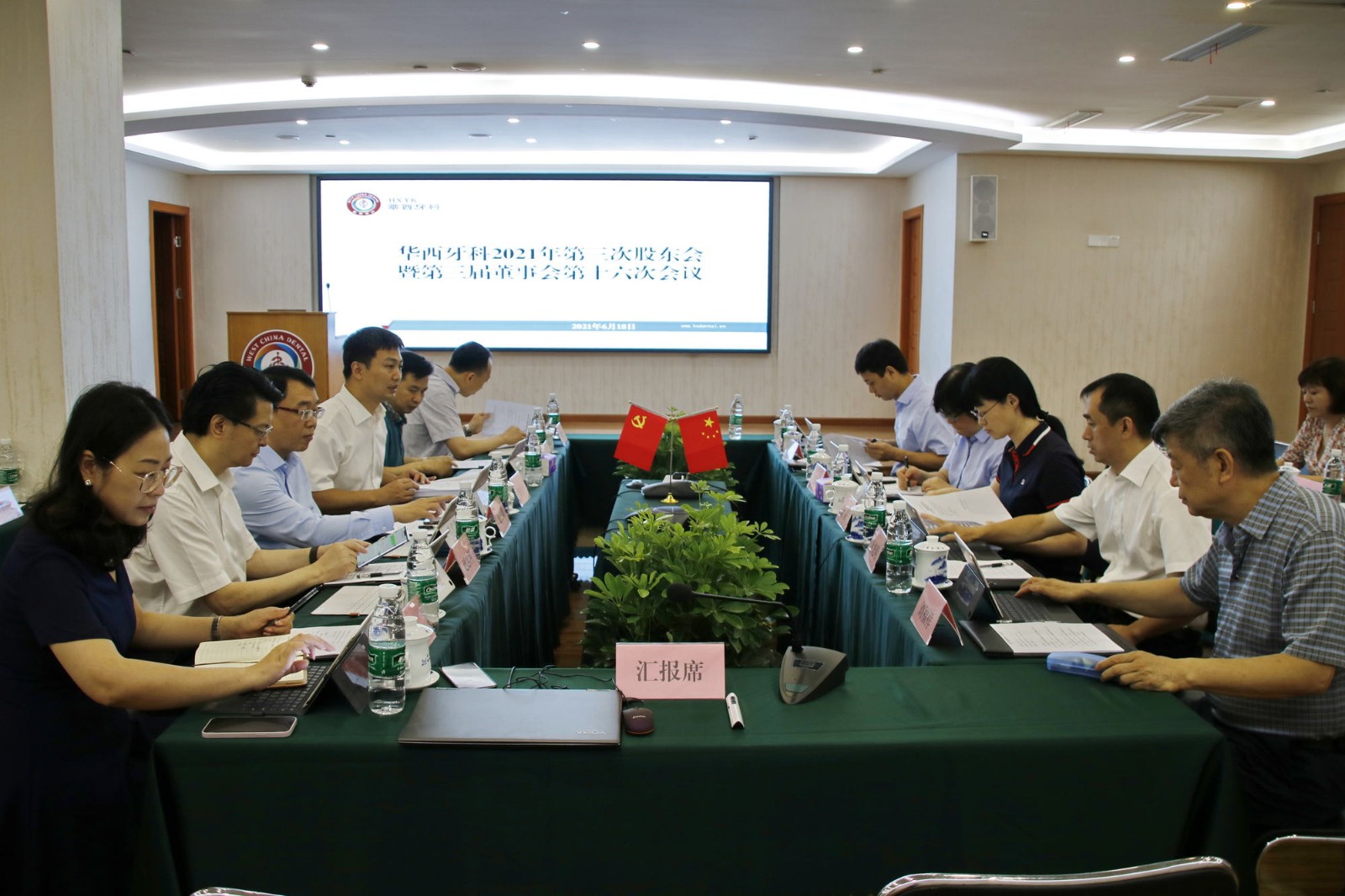 6月17-18日,華西牙科有限責(zé)任公司在重慶華西牙科醫(yī)院召開2021年度股東會(huì)、第三屆董事會(huì)第十六次會(huì)議和第一屆監(jiān)事會(huì)第三次會(huì)議、2021年第一次投資決策委員會(huì)、2021年第一次薪酬績(jī)效委員會(huì)。川投集團(tuán)黨委委員、副總經(jīng)理兼華西牙科董事長(zhǎng)羅永平,川大科產(chǎn)集團(tuán)黨委書記、董事長(zhǎng)、華西牙科監(jiān)事會(huì)主席王安文,國(guó)藥控股副總裁、華西牙科董事連萬勇,國(guó)壽成達(dá)董事總經(jīng)理、華西牙科董事葉栩彪,資陽(yáng)開投風(fēng)控部經(jīng)理、華西牙科監(jiān)事朱玲,四川大學(xué)華西口腔醫(yī)院副院長(zhǎng)、華西牙科董事趙志河教授,川投集團(tuán)資金財(cái)務(wù)部部長(zhǎng)、華西牙科董事葉光明,華西牙科職工董事金晶、董事王海帆,國(guó)藥控股審計(jì)部副部長(zhǎng)、華西牙科監(jiān)事盧海青(線上),華西口腔醫(yī)院種植學(xué)教授、華西牙科投決委委員劉福祥等出席,華西牙科經(jīng)營(yíng)班子成員及部門負(fù)責(zé)人列席會(huì)議。