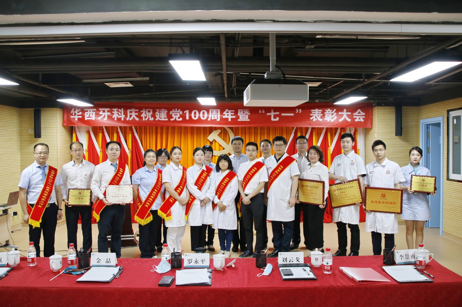 大會在《歌唱祖國》合唱中拉開序幕。王海帆宣讀了《關于表彰2021年度“最美白衣天使”的通報》《關于2021年度“黨員示范崗”、“黨員先鋒崗”評選結果的通報》《關于表彰2021年度優(yōu)秀共產黨員、優(yōu)秀黨務工作者和先進基層黨組織的通報》。公司班子成員對2021年度 “最美白衣天使”、“優(yōu)秀共產黨員”、“優(yōu)秀黨務工作者”、先進基層黨組織進行了頒獎,并對 獲得“黨員示范崗”、 “黨員先鋒崗”的同志進行了授牌,以此鼓勵受表彰的個人再接再厲、再創(chuàng)佳績,同時號召華西牙科全體黨員員工以他們?yōu)榘駱?,立足本職、務實重干、奮勇爭先,為華西牙科的發(fā)展做出新的更大的貢獻。