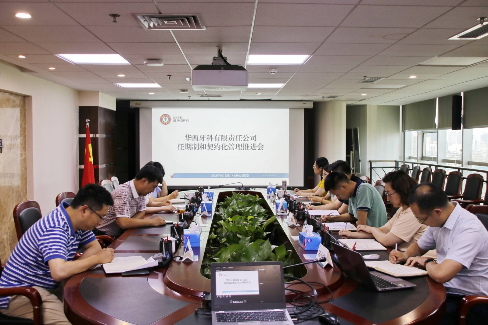 為有效推進(jìn)華西牙科任期制和契約化管理工作落地落實,6月28日下午,華西牙科召開任期制和契約化管理推進(jìn)會第二次會議。川投集團(tuán)黨委委員、副總經(jīng)理兼華西牙科黨委書記、董事長羅永平,華西牙科黨委副書記、紀(jì)委書記、職工董事金晶,副總經(jīng)理劉云戈,黨委委員、董事、財務(wù)總監(jiān)王海帆、副總經(jīng)理李景雨,財務(wù)部、人力資源部、戰(zhàn)略發(fā)展部、運(yùn)營管理部部門負(fù)責(zé)人和員工代表參加會議。