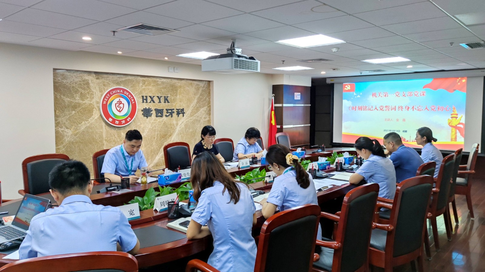 按照華西牙科黨委開(kāi)展黨史學(xué)習(xí)教育統(tǒng)一安排,8月18日上午,機(jī)關(guān)第一黨支部在1501會(huì)議室召開(kāi)黨員大會(huì)。華西牙科黨委副書(shū)記、紀(jì)委書(shū)記、職工董事金晶,黨委委員、董事、財(cái)務(wù)總監(jiān)王海帆出席會(huì)議,機(jī)關(guān)第一黨支部全體黨員、入黨積極分子參加會(huì)議。會(huì)議由華西牙科機(jī)關(guān)第一黨支部書(shū)記、總經(jīng)理助理、人力資源部總監(jiān)朱倫倫主持。