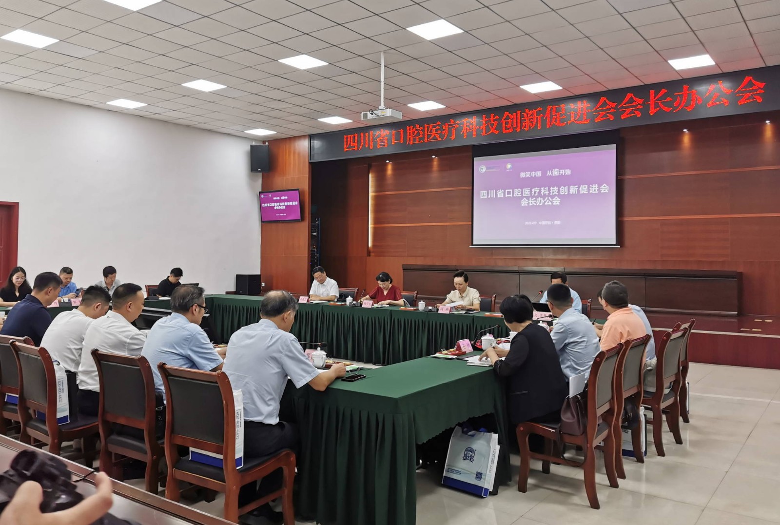 2021年9月10日,四川省口腔醫(yī)療科技創(chuàng)新促進會會長辦公會在資陽中國牙谷科創(chuàng)園召開,會議由四川大學華西口腔醫(yī)學院學術院長、口腔疾病研究國家重點實驗室主任、四川省口腔醫(yī)學會會長、四川省口腔醫(yī)療科技創(chuàng)新促進會會長、華西牙科專家委主任周學東教授召集,川投集團黨委委員、副總經(jīng)理兼華西牙科有限責任公司黨委書記、董事長、促進會副會長羅永平,華西牙科專家委副主任、資陽口腔職業(yè)學院院長、副會長鄭立舸教授,資陽口腔職業(yè)學院副院長、副秘書長萬呼春教授,華西牙科醫(yī)療事務部副總監(jiān)羅陽等參加會議。