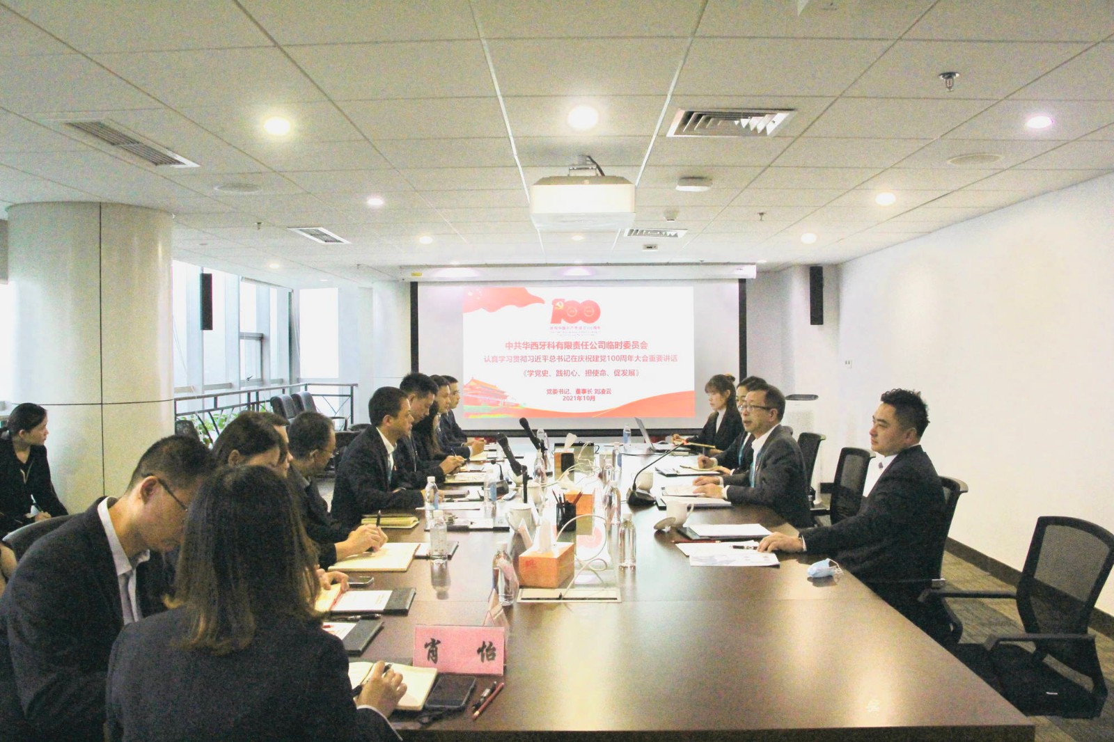 根據(jù)華西牙科黨委開(kāi)展黨史學(xué)習(xí)教育統(tǒng)一安排,10月28日上午,華西牙科黨委書(shū)記劉凌云以《學(xué)黨史、踐初心、擔(dān)使命、促發(fā)展》為題為四川口腔醫(yī)院黨總支作習(xí)總書(shū)記“七一”重要講話精神專(zhuān)題宣講,華西牙科副總經(jīng)理、四川口腔醫(yī)院黨總支書(shū)記、董事長(zhǎng)劉云戈,華西牙科總經(jīng)理助理、人力資源部總監(jiān)朱倫倫,四川口腔醫(yī)院黨總支黨員、入黨積極分子共20余人參加了學(xué)習(xí)。