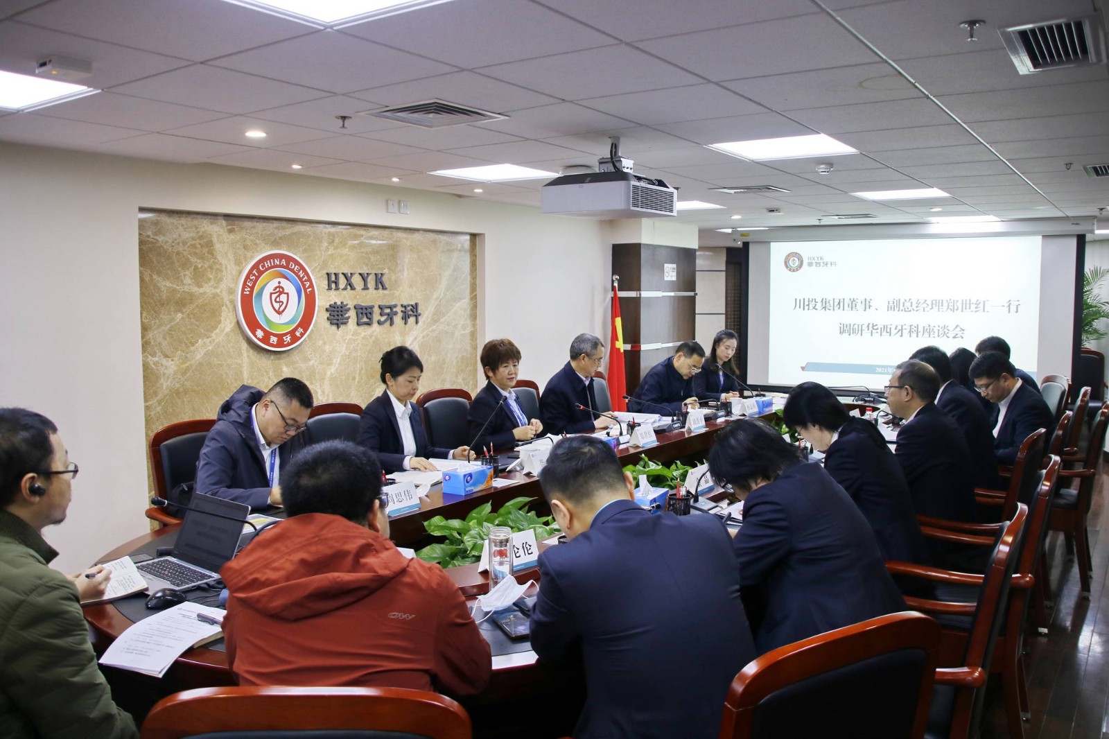 12月7日下午,川投集團(tuán)董事、副總經(jīng)理鄭世紅,率總經(jīng)理助理、戰(zhàn)略投資部部長(zhǎng)田傳平、總經(jīng)理助理、資本運(yùn)營(yíng)部部長(zhǎng)龔圓、董監(jiān)辦專職外派董監(jiān)事孫志祥、資本運(yùn)營(yíng)部副部長(zhǎng)周思偉及相關(guān)部門人員一行蒞臨華西牙科調(diào)研指導(dǎo)工作,華西牙科黨委書記、董事長(zhǎng)劉凌云,華西牙科經(jīng)營(yíng)班子、相關(guān)部門負(fù)責(zé)人陪同調(diào)研。