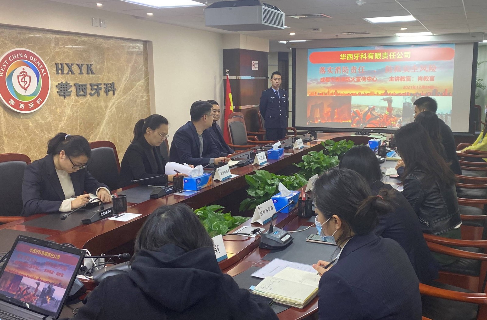 為進(jìn)一步提高華西牙科全體員工安全意識及處理突發(fā)事件的能力,12月21日下午,華西牙科組織開展了2021年消防安全知識培訓(xùn),華西牙科副總經(jīng)理、安環(huán)職委員會常務(wù)副主任李景雨出席并講話,全體員工參加培訓(xùn)。