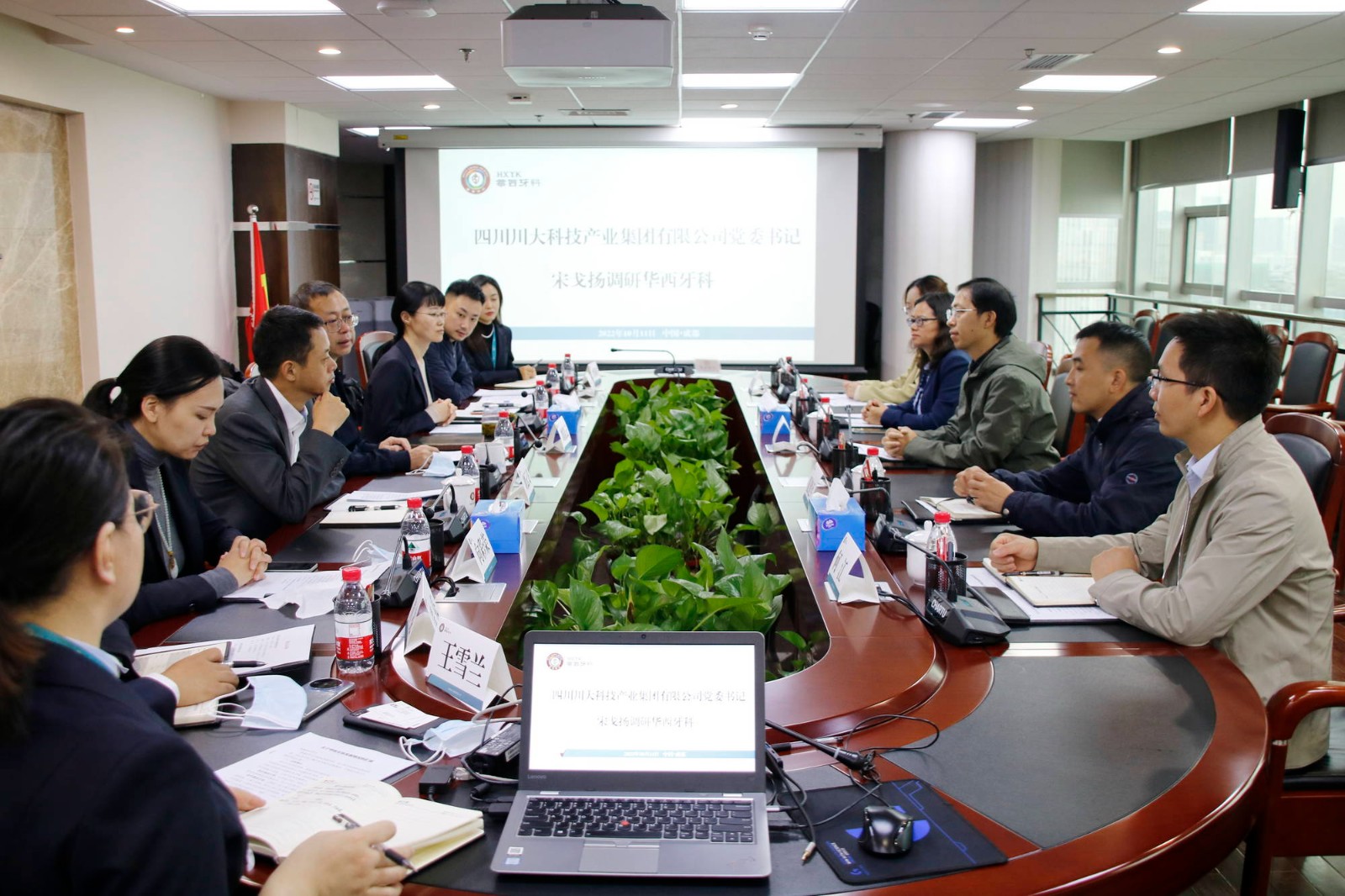 10月11日上午,四川川大科技產(chǎn)業(yè)集團(tuán)有限公司黨委書記宋戈揚(yáng)一行赴華西牙科、四川口腔醫(yī)院調(diào)研指導(dǎo)工作。華西牙科黨委書記、董事長劉凌云,黨委副書記、職工董事、工會(huì)主席金晶,黨委委員、副總經(jīng)理劉云戈陪同調(diào)研。