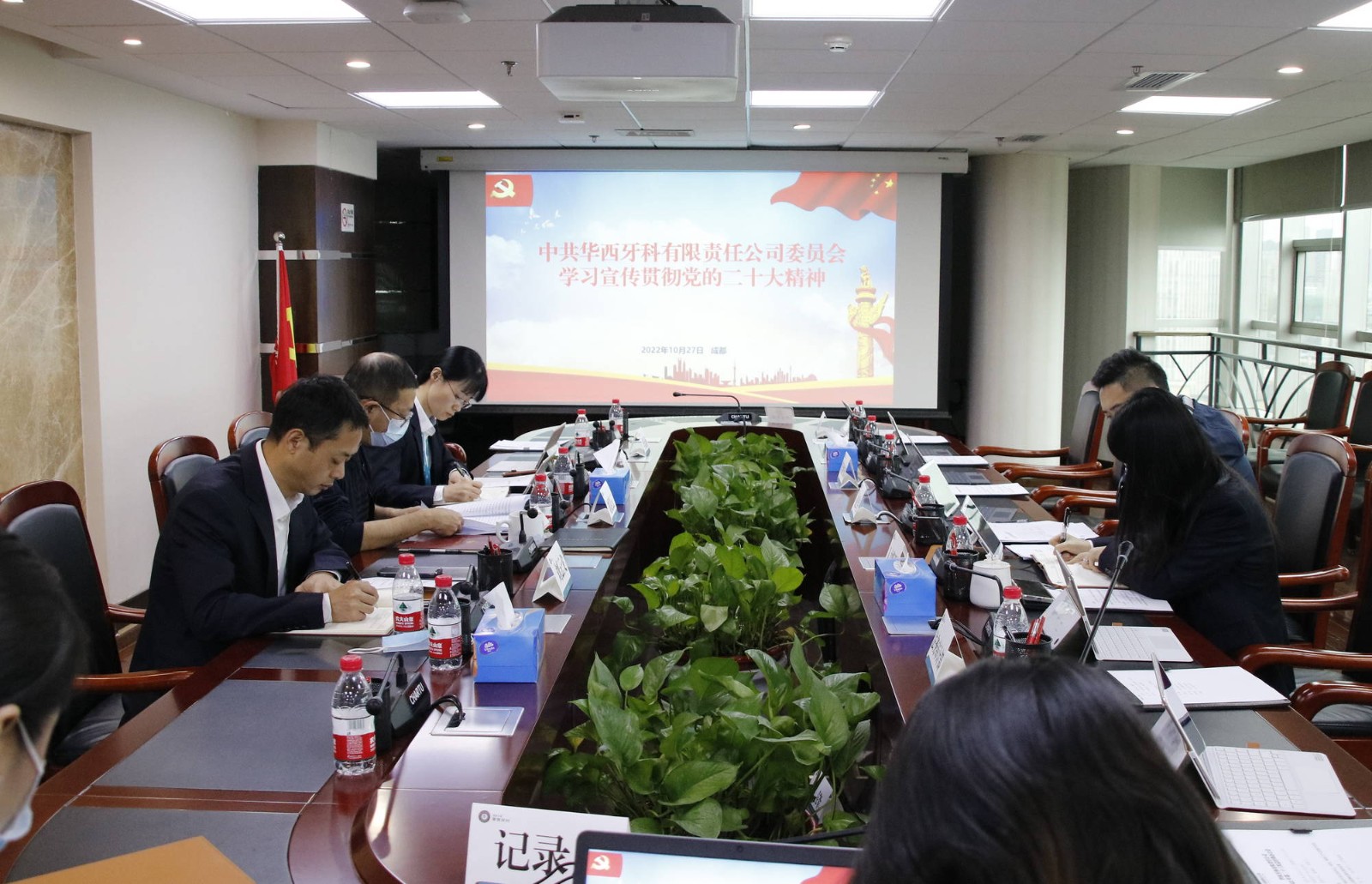 10月27日,華西牙科黨委召開黨委會議,傳達(dá)學(xué)習(xí)黨的二十大精神,部署貫徹落實(shí)意見。會前,各黨委委員原原本本研讀了黨的二十大報告、黨章等學(xué)習(xí)資料,會上圍繞習(xí)近平總書記在黨的二十大發(fā)表的重要講話進(jìn)行集中學(xué)習(xí)。華西牙科黨委書記、董事長劉凌云主持會議并講話。
