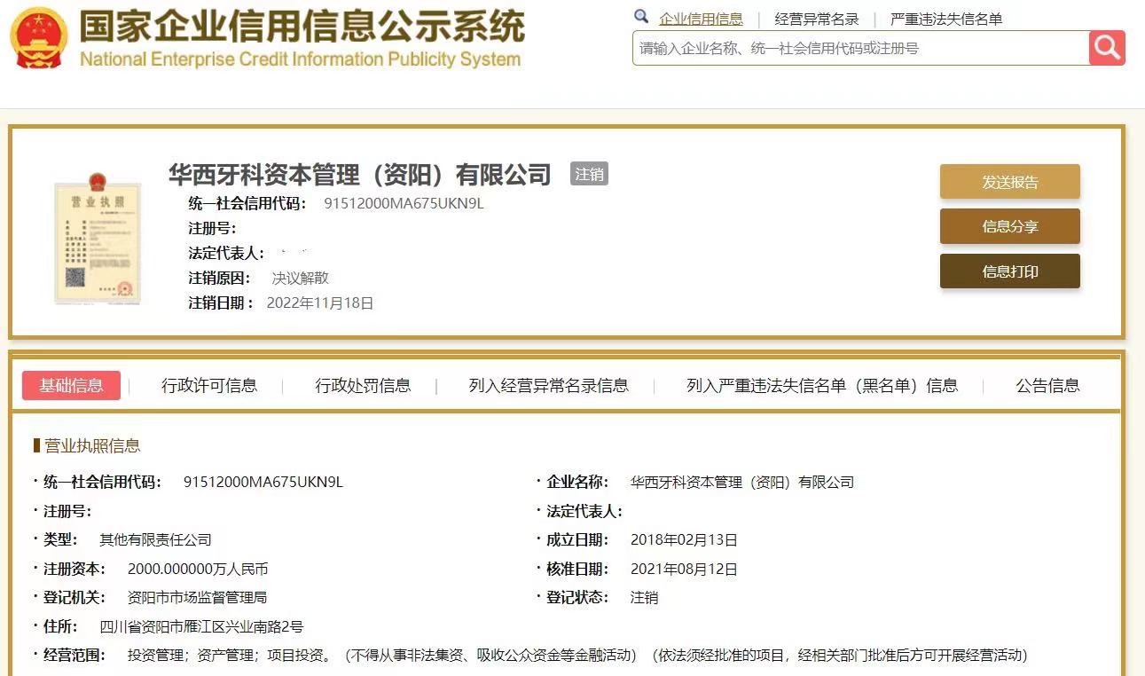 經(jīng)過努力,資本管理公司終于合法合規(guī)地順利完成注銷,對華西牙科“瘦身減負”,聚焦“SMS”醫(yī)療機構(gòu)布局主業(yè)具有重要意義。