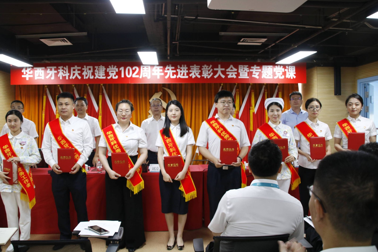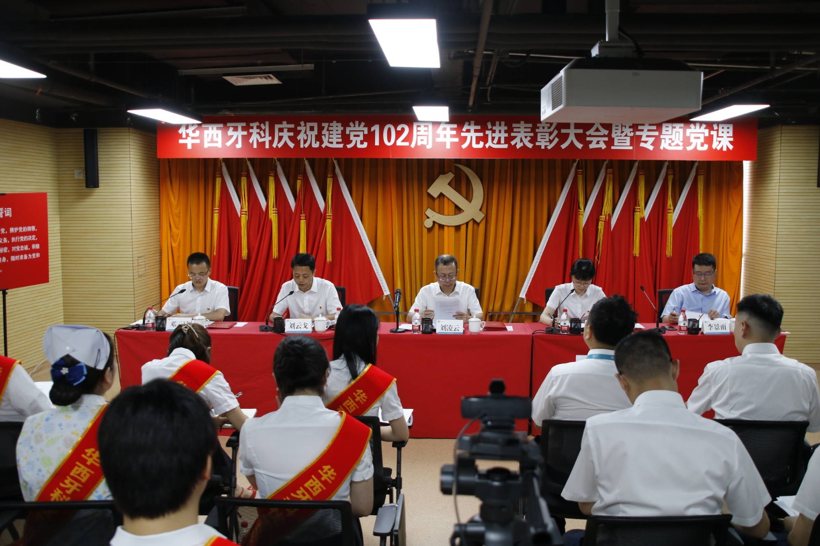在中國(guó)共產(chǎn)黨102周年華誕即將到來(lái)之際,6月30日上午,華西牙科黨委召開(kāi)先進(jìn)表彰大會(huì)暨專(zhuān)題黨課。華西牙科黨委書(shū)記、董事長(zhǎng)、總經(jīng)理劉凌云,黨委副書(shū)記、工會(huì)主席金晶,黨委委員、副總經(jīng)理劉云戈,副總經(jīng)理李景雨,黨委委員、紀(jì)委書(shū)記鄧云斌出席會(huì)議。大會(huì)由金晶主持。