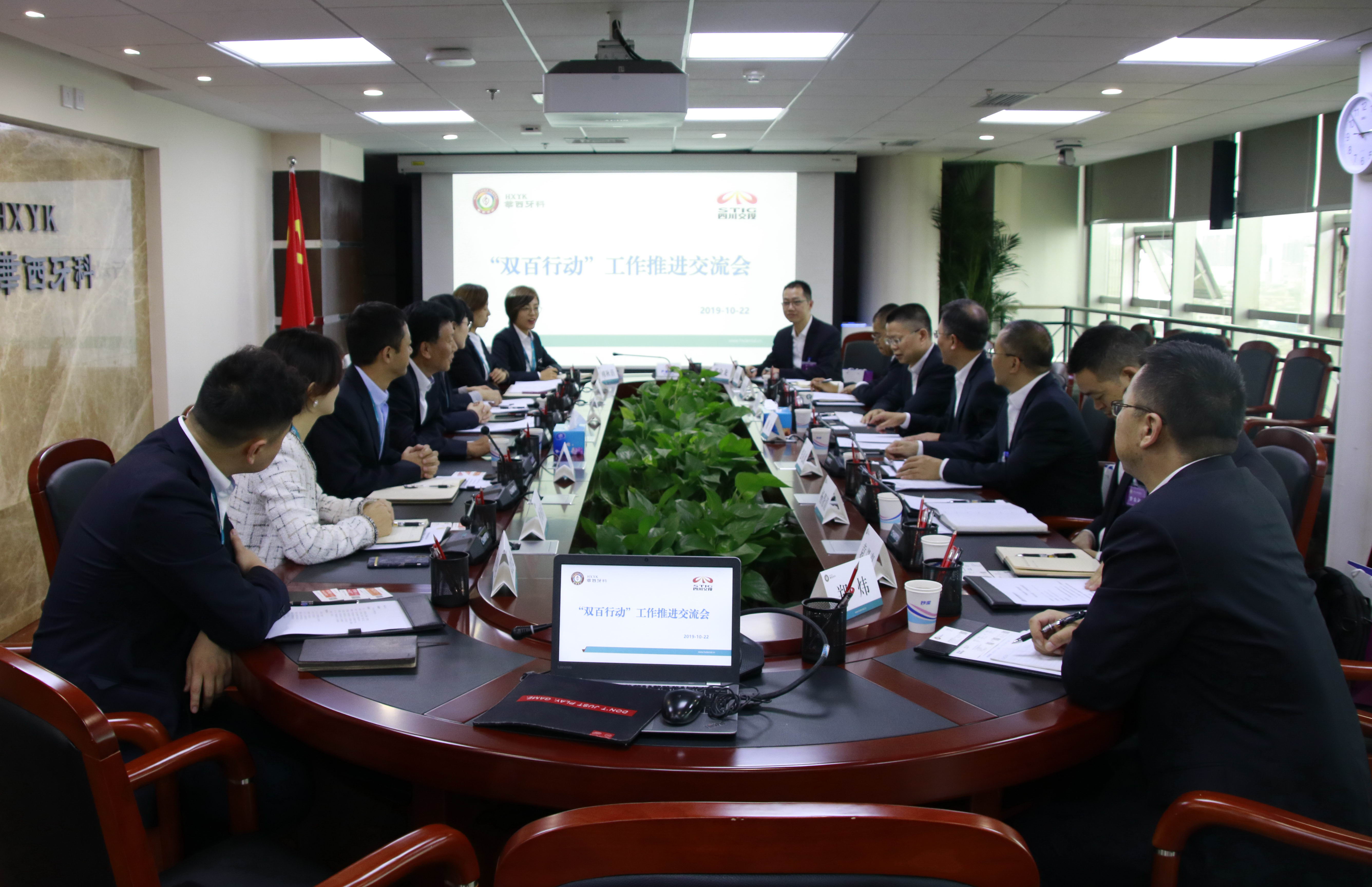隨后,雙方共同召開了“雙百行動”工作推進交流會。金晶就華西牙科成立背景、業(yè)務(wù)板塊、規(guī)模效益等基本情況作了簡要介紹,并就公司自入圍“雙百行動”以來,改革創(chuàng)新、先行先試的舉措作了交流發(fā)言:一是著眼5個主要改革目標(biāo),按工作臺賬有序開展,整體上在股權(quán)多元化和混合所有制改革、健全法人治理結(jié)構(gòu)、完善市場化經(jīng)營機制、健全激勵約束機制、強化黨的領(lǐng)導(dǎo)等方面有所推進;二是通過市場化選聘、全員制任期、強化績效考評、完善責(zé)權(quán)匹配等舉措,探索建立符合國企改革的勞動人事用工機制;三是以“尊重法人治理,激活企業(yè)活力”為原則,以“預(yù)算、考核、董事會議案審議、運營情況分析及反饋”為手段,對各下屬企業(yè)做到分類管理、放管結(jié)合。