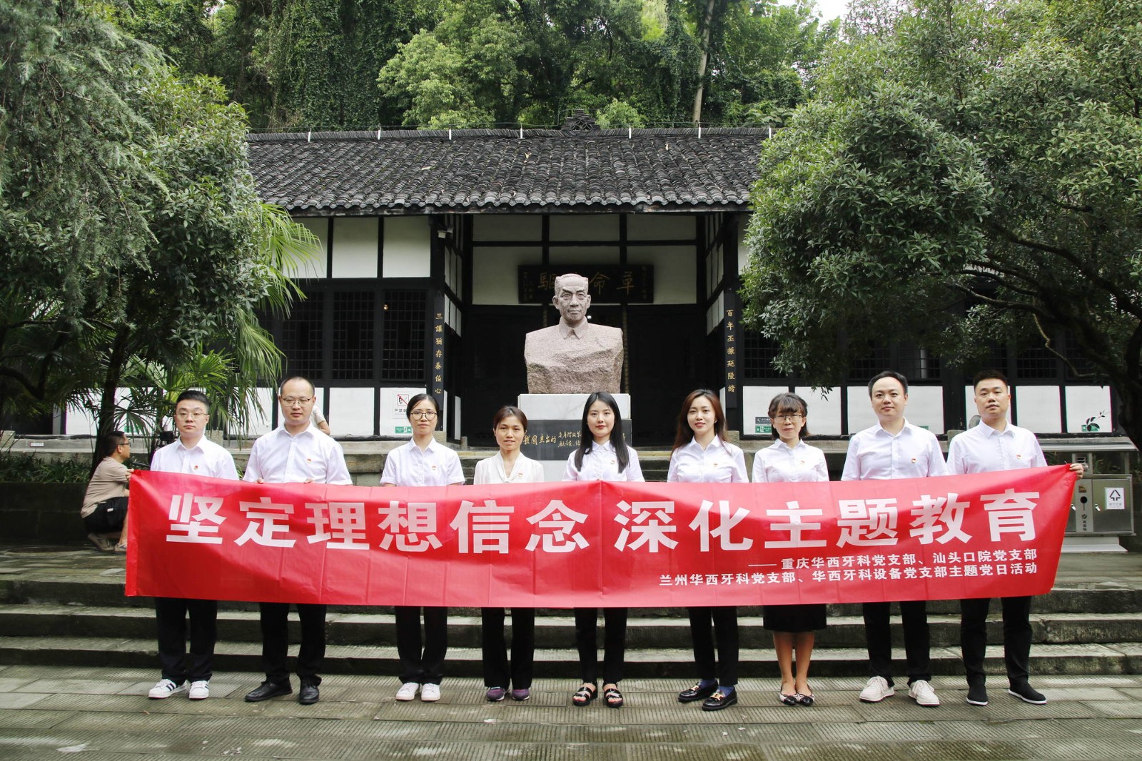 根據(jù)華西牙科主題教育工作安排,為引導(dǎo)黨員干部增強(qiáng)黨性修養(yǎng),堅定理想信念,8月25日,重慶華西牙科黨支部、汕頭口院黨支部、蘭州華西牙科黨支部、華西牙科設(shè)備黨支部前往自貢吳玉章故居聯(lián)合開展“堅定理想信念 深化主題教育”主題黨日活動。