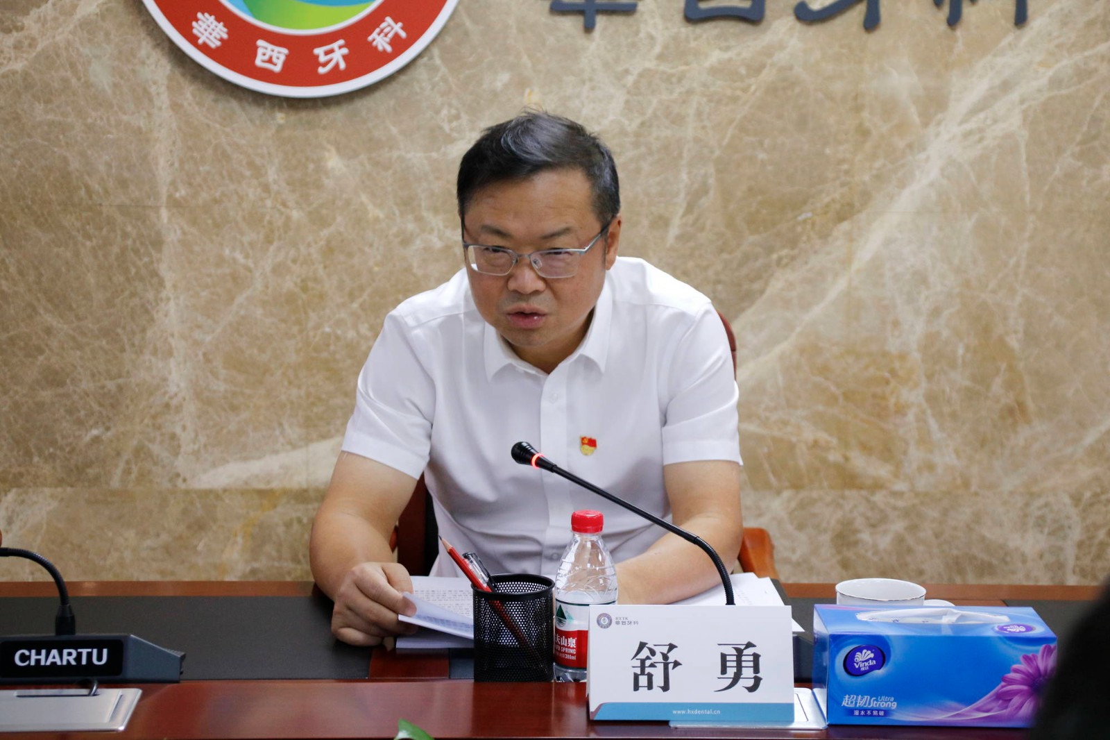 川投集團(tuán)黨委組織部副部長鄭雄,華西牙科黨委副書記、工會(huì)主席金晶,黨委委員、副總經(jīng)理劉云戈,副總經(jīng)理李景雨,黨委委員、紀(jì)委書記鄧云斌出席宣講活動(dòng),華西牙科中層以上管理人員、各基層黨支部書記共20余人參加學(xué)習(xí)。