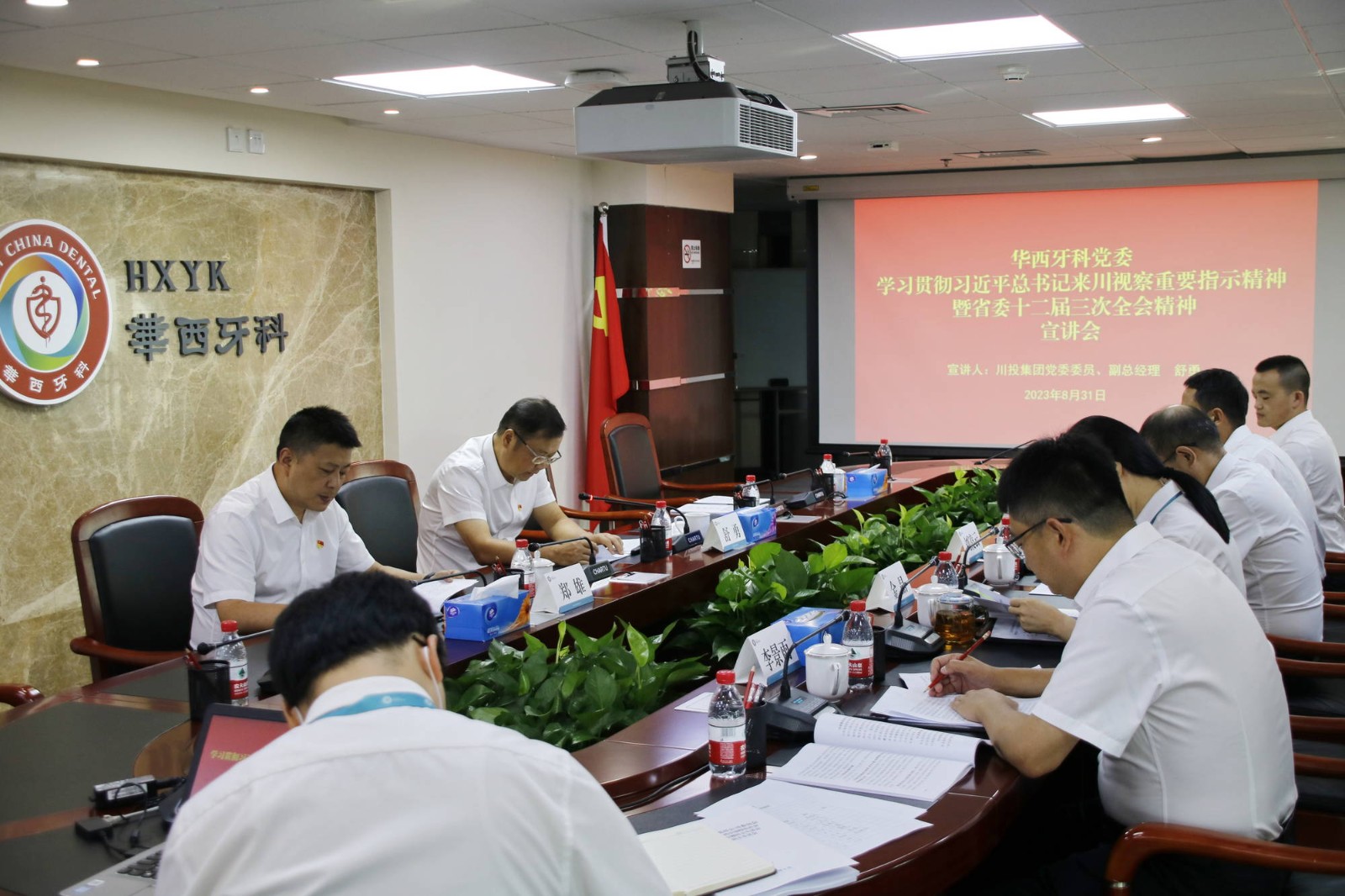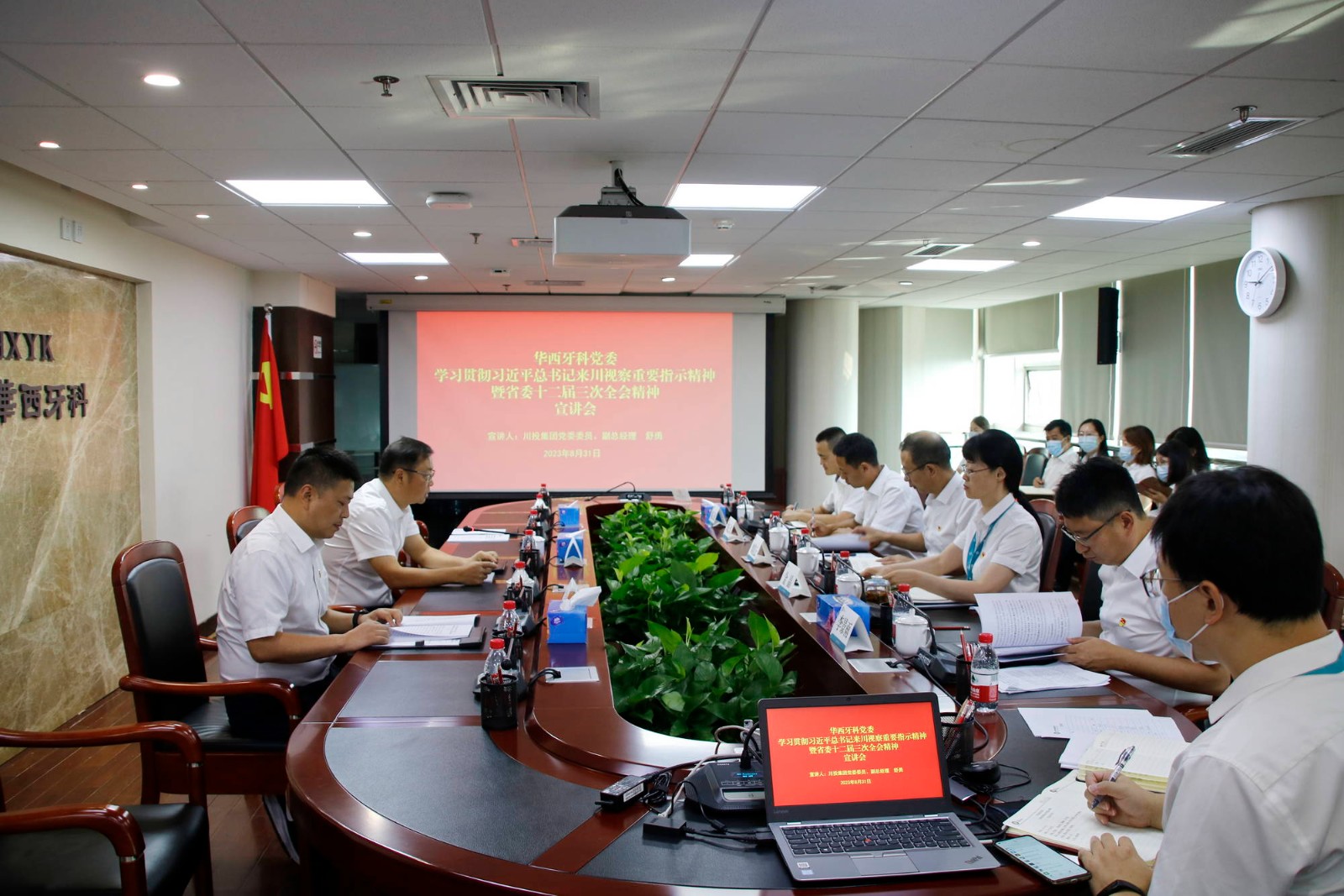 8月31日上午,學(xué)習(xí)貫徹習(xí)近平總書記來川視察重要指示精神暨省委十二屆三次全會(huì)精神專題宣講會(huì)在華西牙科1501會(huì)議室舉行。川投集團(tuán)黨委委員、副總經(jīng)理舒勇作專題宣講。華西牙科黨委書記、董事長、總經(jīng)理劉凌云主持宣講活動(dòng)。