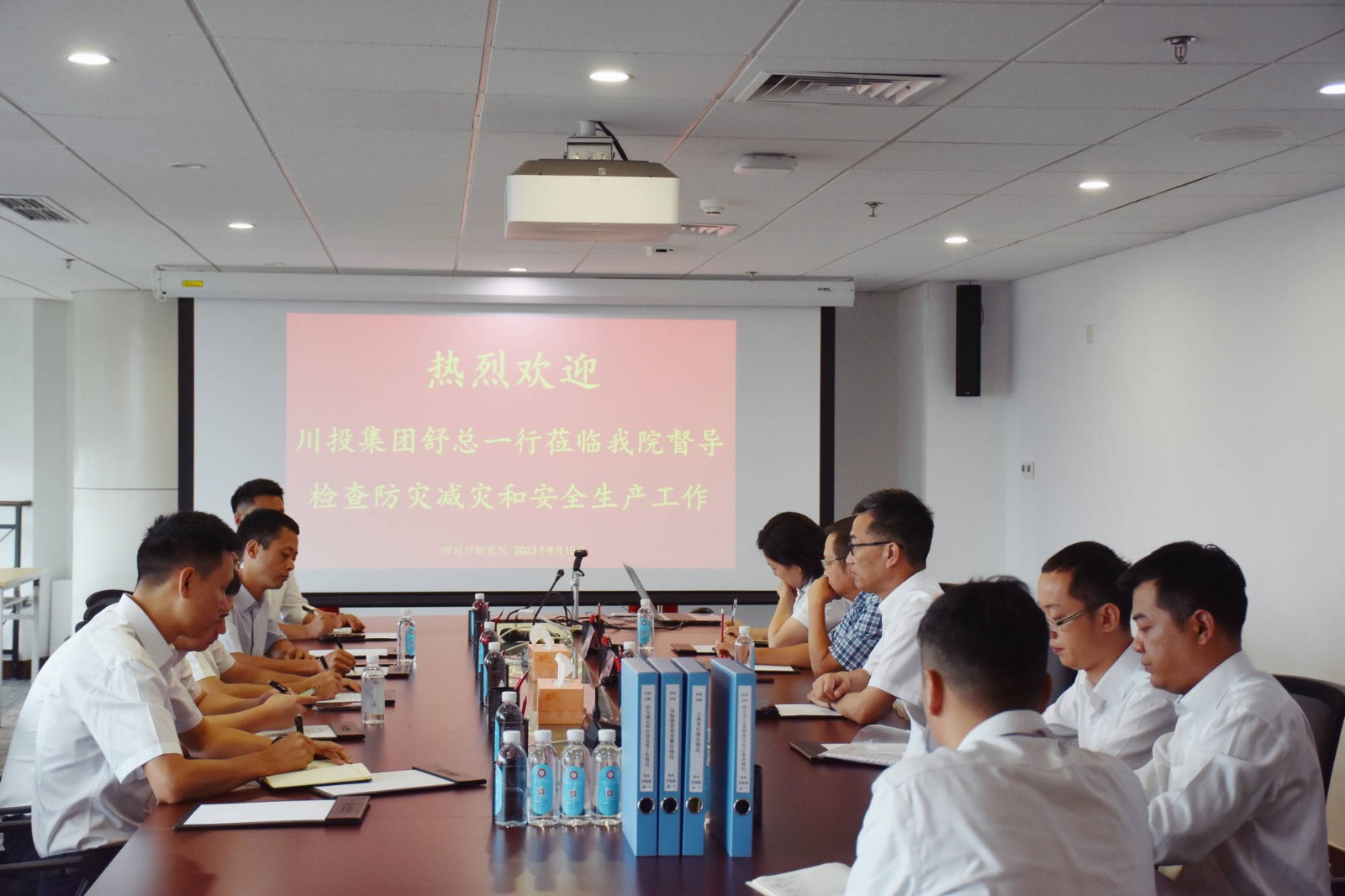 9月15日,川投集團(tuán)黨委委員、副總經(jīng)理舒勇帶隊(duì)赴華西牙科督導(dǎo)檢查防災(zāi)減災(zāi)和安全生產(chǎn)工作。川投集團(tuán)總經(jīng)理助理李勝章,華西牙科黨委書記、董事長、總經(jīng)理劉凌云陪同。