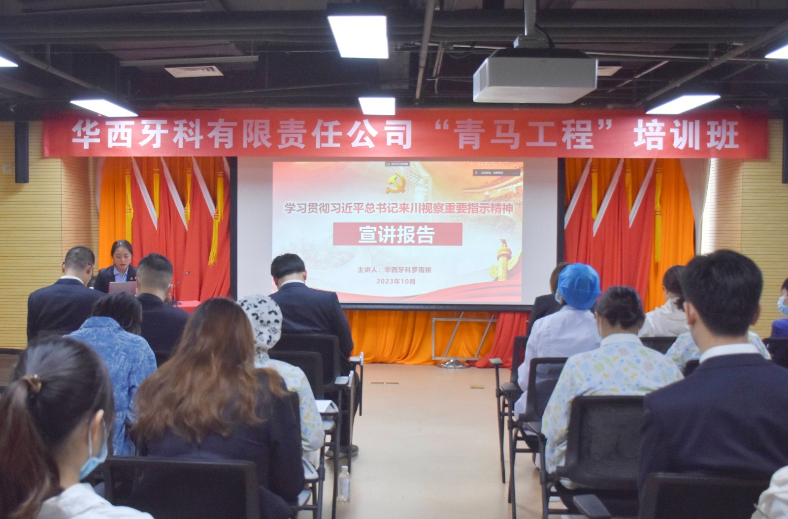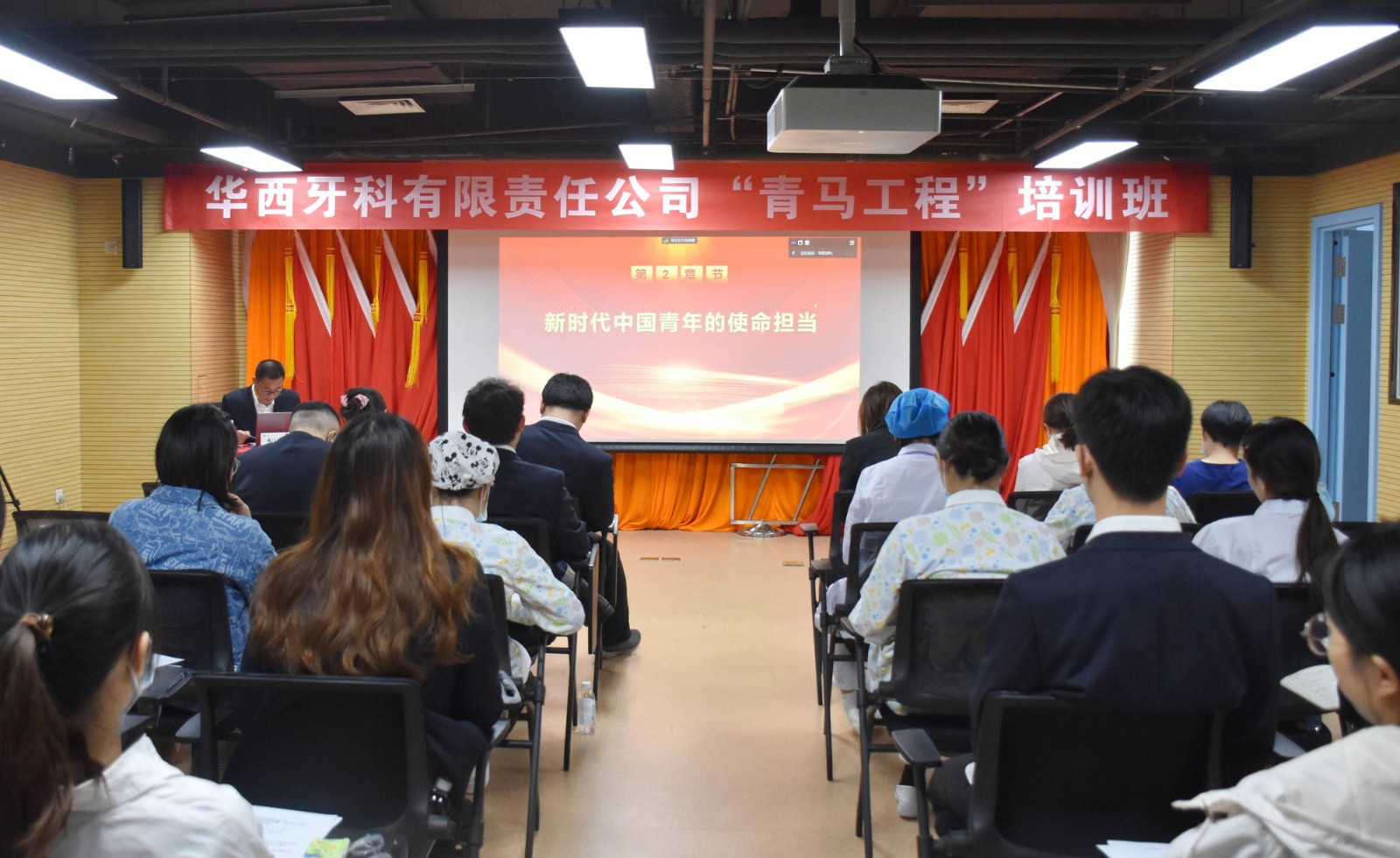 10月24日,華西牙科組織開展了團(tuán)員和青年主題教育集中學(xué)習(xí)暨“青馬工程”培訓(xùn)班。華西牙科團(tuán)委委員、各級(jí)團(tuán)組織負(fù)責(zé)人、本部及各所屬公司團(tuán)員和35歲以下非黨員青年代表近70人通過“線下+視頻”相結(jié)合的方式參加培訓(xùn)。