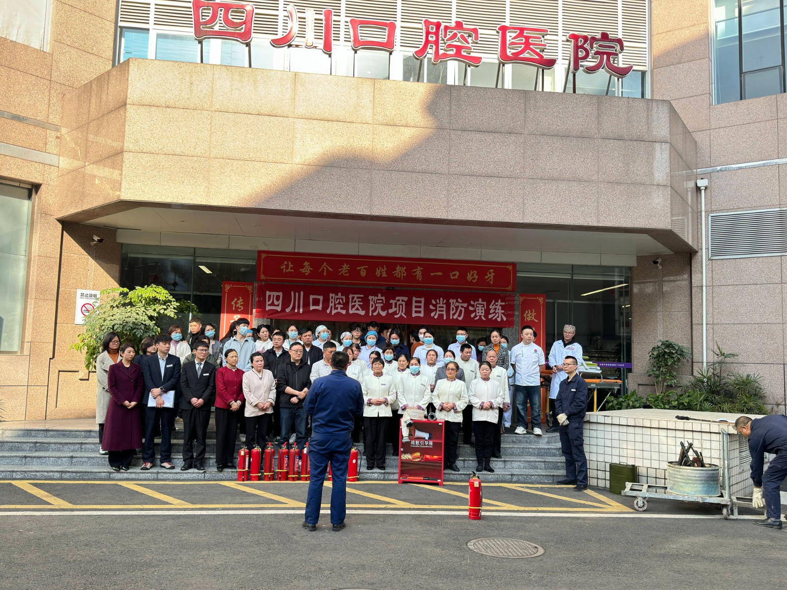 為強化全員消防安全意識,提高全員處置突發(fā)火災能力,3月11日,四川口腔醫(yī)院組織全體干部職工開展消防操作技能培訓。