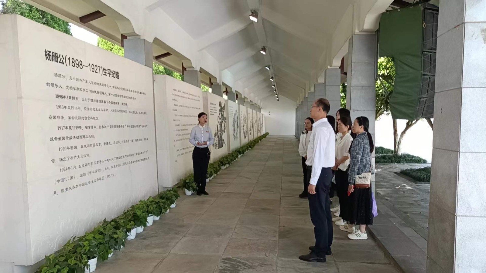 在楊闇公烈士陵園,講解員講述了楊闇公成立中共重慶地委、領(lǐng)導(dǎo)瀘順起義、最后為了自己的信仰和理想,為了民族的解放和人民的幸福,不畏艱難、不怕犧牲,面對嚴(yán)刑拷打也毫不畏懼,最終英勇就義的事跡。