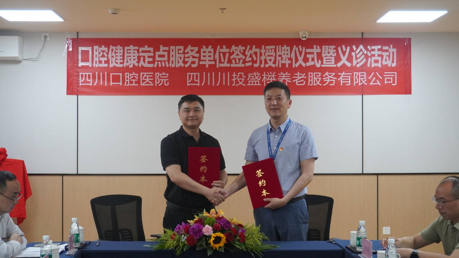 5月15日,四川口腔醫(yī)院與川投舒適之家·吉福院舉行口腔健康定點(diǎn)服務(wù)單位簽約授牌儀式暨口腔義診活動(dòng)。雙方達(dá)成戰(zhàn)略合作協(xié)議,旨在共同為機(jī)構(gòu)在住長(zhǎng)者、周邊居家長(zhǎng)者建立正確的口腔健康觀念,提升老年人口腔健康水平,為老年人的養(yǎng)老生活質(zhì)量提升帶來(lái)積極影響。武侯區(qū)晉陽(yáng)街道黨工委委員、吉福社區(qū)黨委書(shū)記李含榮,川投大健康產(chǎn)業(yè)集團(tuán)黨委副書(shū)記、職工董事、工會(huì)主席王少甫,華西牙科副總經(jīng)理李景雨,四川口腔醫(yī)院黨總支書(shū)記、董事長(zhǎng)、總經(jīng)理朱倫倫,川投盛櫸公司黨支部書(shū)記、執(zhí)行董事、總經(jīng)理?xiàng)铒w參加儀式。