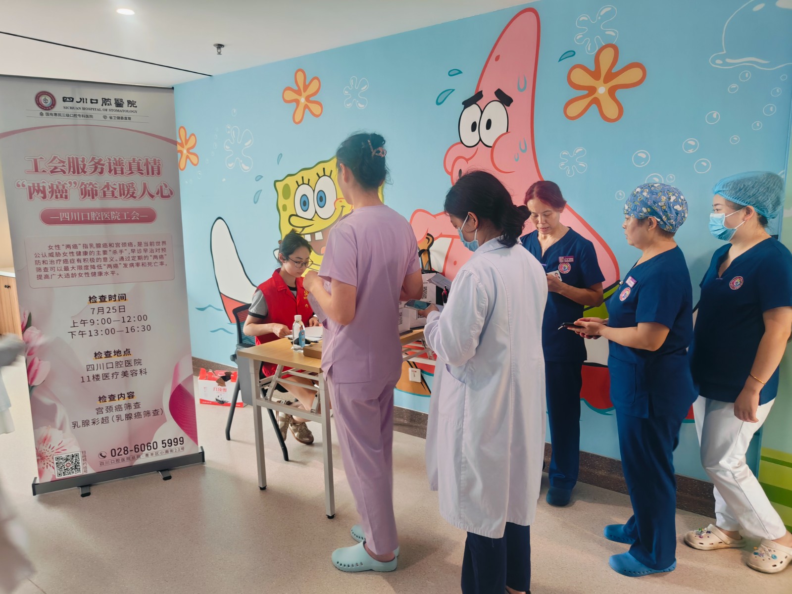 為進(jìn)一步保障女職工健康權(quán)益,提升女職工健康水平,7月26日,四川口腔醫(yī)院工會(huì)聯(lián)合青羊區(qū)婦幼保健院為適齡女職工開展宮頸癌、乳腺癌“兩癌”免費(fèi)篩查,確保早發(fā)現(xiàn)、早診斷、早治療。