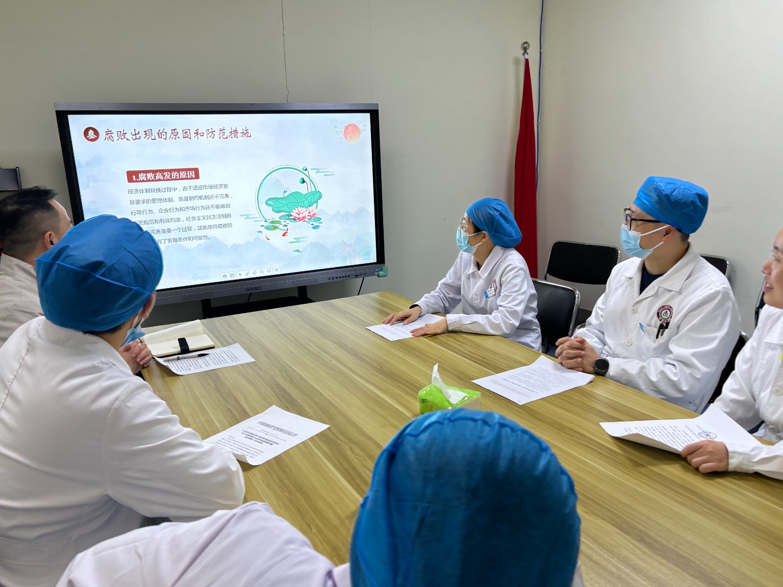 會議從典型案例通報、深挖違紀(jì)違法根源、鏟除腐敗產(chǎn)生的土壤和條件三個層次給干部職工上了警示教育生動震撼的一課。用身邊事教育身邊人、以身邊案警示身邊人,警示全院醫(yī)務(wù)人員時常叩問初心,堅定理想信念不動搖,筑牢拒腐防變的思想堤壩、制度防線、法律底線。會上還播放了警示教育片,閱讀研討了相關(guān)教育文件,參會人員紛紛表示自己將在今后的工作中堅持以患者為中心的原則,保持醫(yī)學(xué)道德的高標(biāo)準(zhǔn)和嚴(yán)格要求,加強(qiáng)自身的約束和自我監(jiān)督。