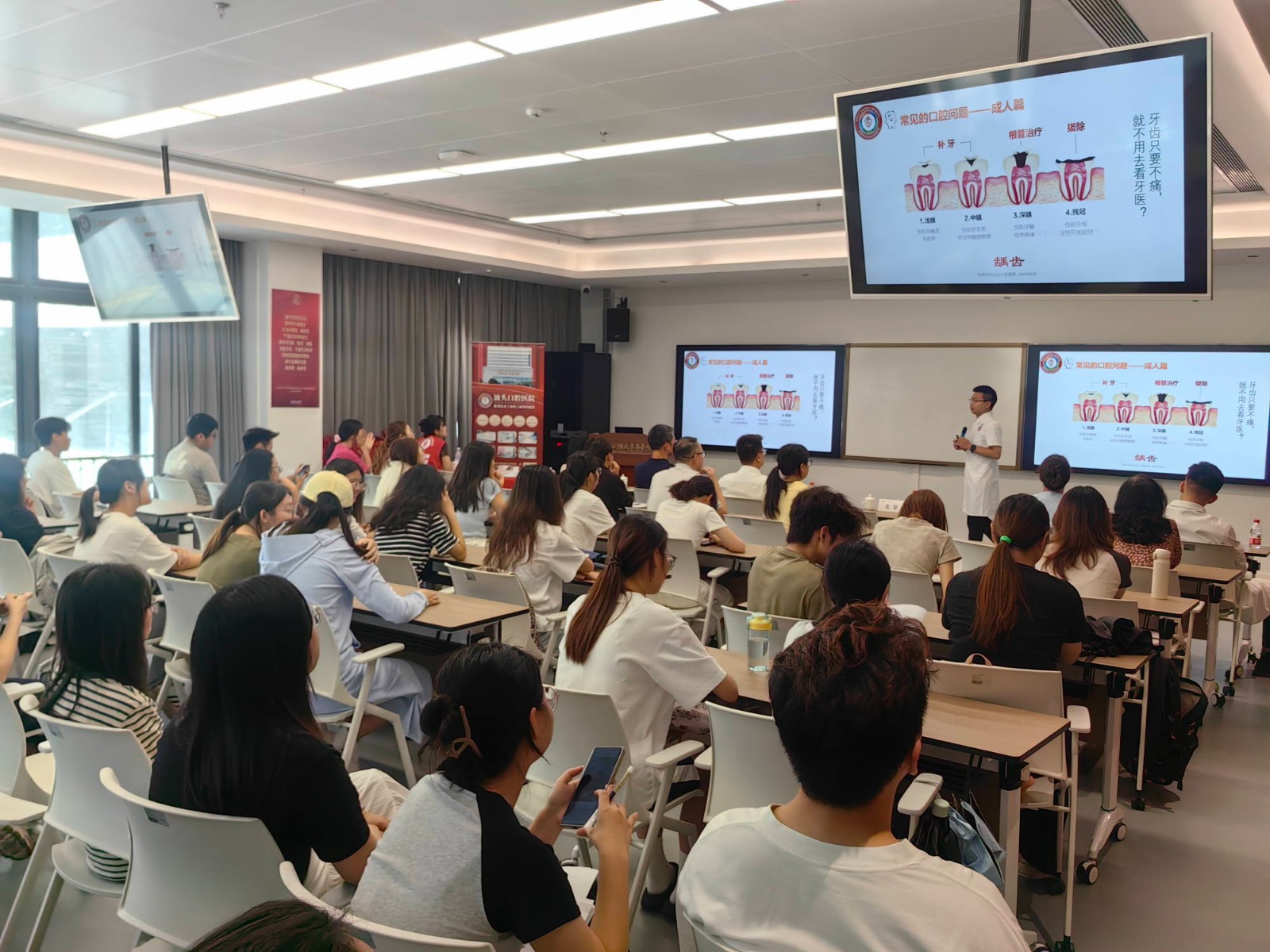 簽約現(xiàn)場,汕頭口腔醫(yī)院張黎醫(yī)生為百余名師生開展了“為健康 懂口腔”科普講座。講座中,張黎醫(yī)生借助的圖片、視頻資料,對(duì)臨床常見口腔問題進(jìn)行了深入淺出的講解,精彩實(shí)用的講解內(nèi)容引發(fā)了師生的強(qiáng)烈關(guān)注與積極反響。隨后,汕頭口腔醫(yī)院醫(yī)護(hù)團(tuán)隊(duì)現(xiàn)場開展了口腔健康義診咨詢活動(dòng)。師生們就牙齒敏感、刷牙出血、牙齒矯正、牙齒缺失等常見口腔健康問題進(jìn)行咨詢,醫(yī)護(hù)人員對(duì)他們的疑問進(jìn)行了專業(yè)、細(xì)致的解答,并提供了科學(xué)合理的治療建議。參與活動(dòng)的師生紛紛表示,通過此次活動(dòng)進(jìn)一步了解了口腔健康知識(shí),希望未來能有更多類似的科普與義診活動(dòng)走進(jìn)校園。