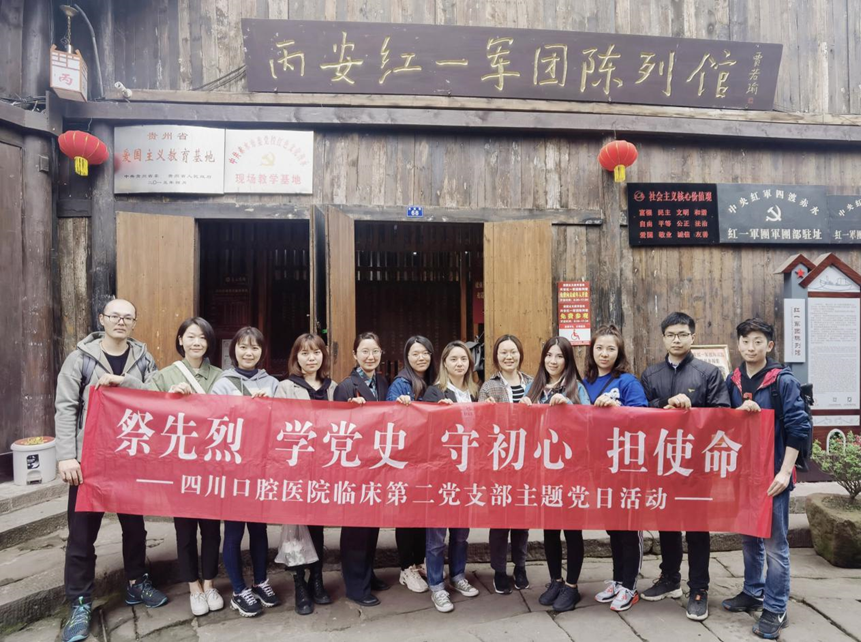 為慶祝中國共產黨成立100周年,回顧黨的歷程,謳歌黨的豐功偉績,進一步激發(fā)黨組織活力,提醒黨員干部時刻牢記共產黨人的初心使命,按照華西牙科臨時黨委《關于開展黨史學習教育的實施方案》的安排部署,4月14日至17日,四川口腔醫(yī)院臨床黨支部和機關黨支部分兩批次組織黨員、入黨積極分子、員工代表前往丙安紅一軍團陳列館、四渡赤水紀念館開展主題黨日活動。本次活動旨在深入開展黨史學習教育,進一步增強黨員黨性觀念,發(fā)揚艱苦奮斗的長征精神,增強黨員隊伍凝聚力、戰(zhàn)斗力。