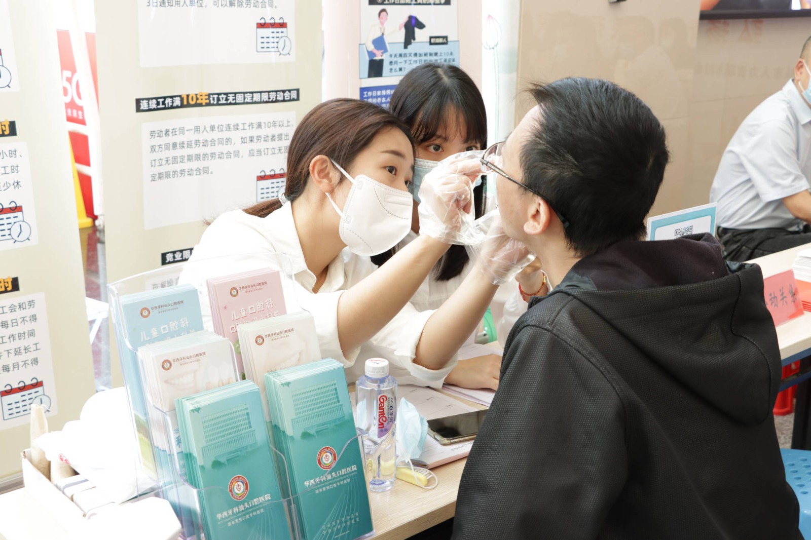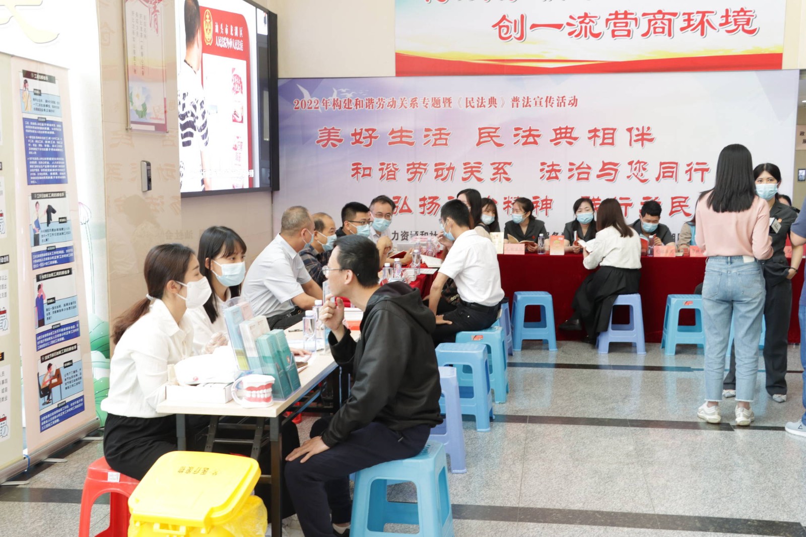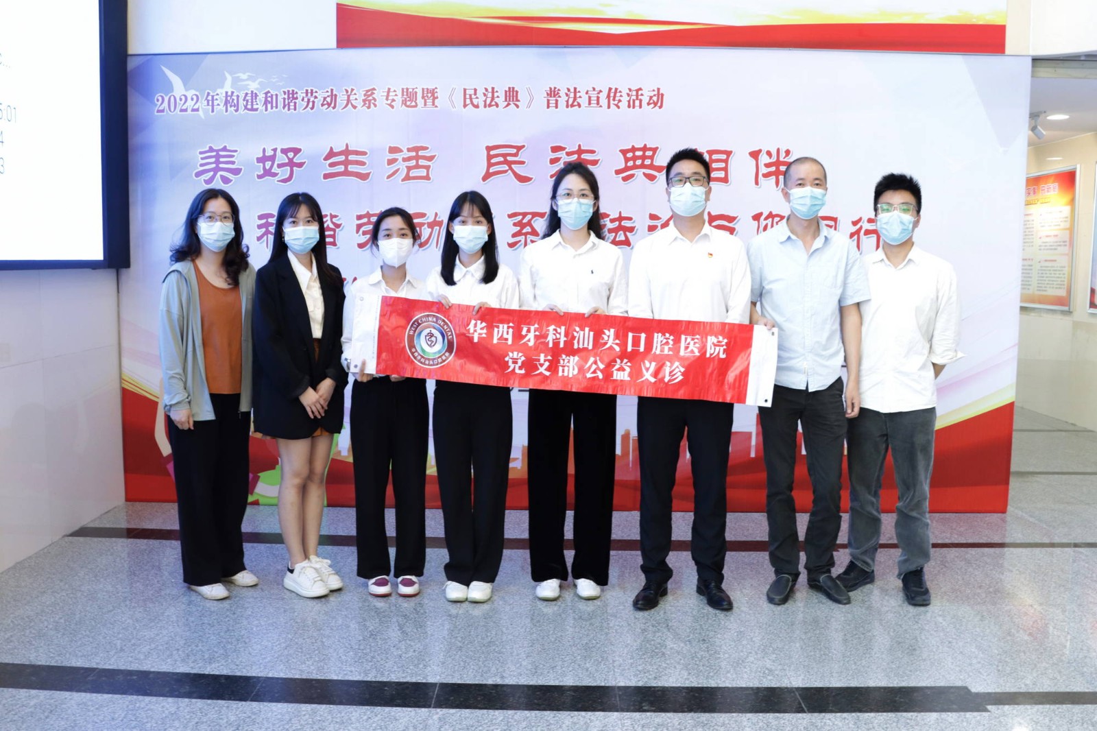 5月19日上午,由汕頭市人力資源和社會保障局、汕頭市政務(wù)服務(wù)數(shù)據(jù)管理局及汕頭市龍湖區(qū)人民法院聯(lián)合主辦,汕頭口腔醫(yī)院黨支部、汕頭市勞動人事爭議調(diào)解仲裁院及廣東國源嶺東律師事務(wù)所協(xié)辦的“2022年構(gòu)建和諧勞動關(guān)系專題暨《民法典》普法宣傳活動”在汕頭市政務(wù)服務(wù)中心舉辦,汕頭口腔醫(yī)院黨支部帶隊到場開展口腔義診活動。