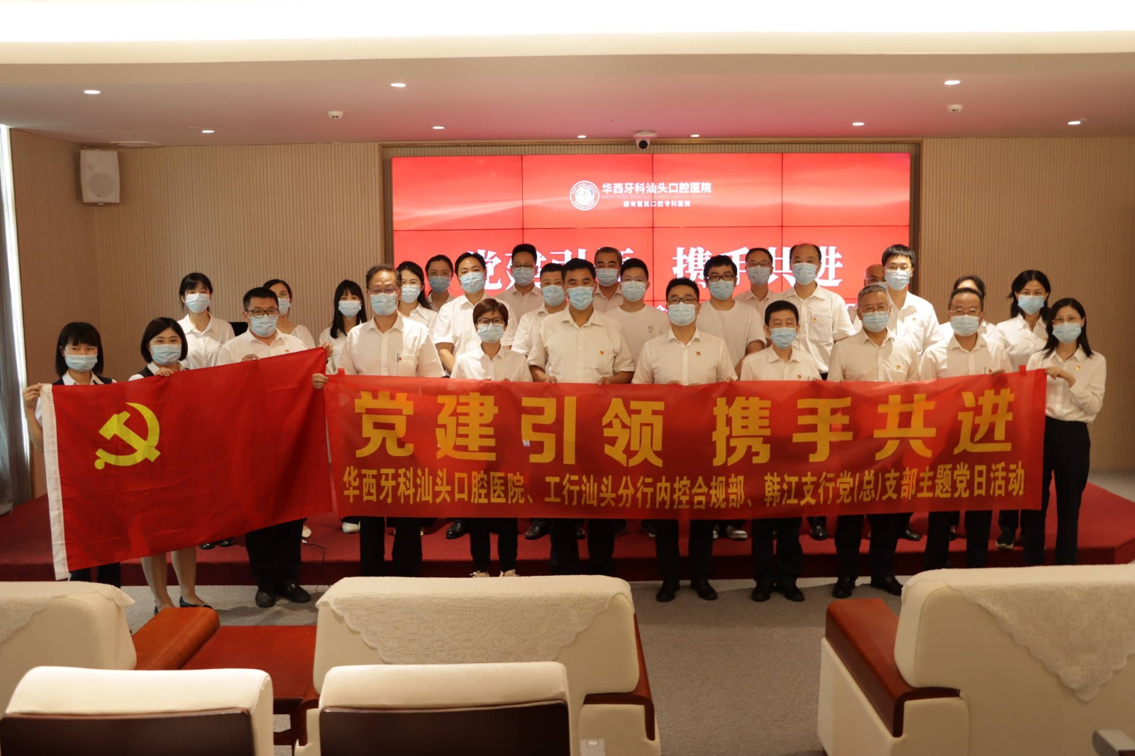 為凝聚黨建合力,推動(dòng)資源共享,構(gòu)建雙向促進(jìn)的黨建工作新格局,7月15日,汕頭口腔醫(yī)院黨支部與汕頭市工商銀行韓江支行黨(總)支部舉行黨建共建簽約儀式。汕頭口腔醫(yī)院黨支部書記鐘至誠、汕頭市工商銀行韓江支行黨(總)支部書記盧育騰及雙方黨員代表參加簽約儀式。