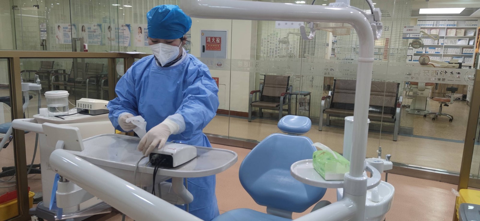 12月4日,醫(yī)院各部門員工分批次返崗,進行復(fù)診前的準備工作。全體員工在返崗前進行核酸檢測,保證在崗期間持有72小時核酸陰性報告。各臨床科室嚴格進行診療環(huán)境管理,高標準執(zhí)行《口腔診療器械消毒滅菌技術(shù)操作規(guī)范》,加強診療環(huán)境(牙椅、臺面、地面等)的通風和清潔消毒。