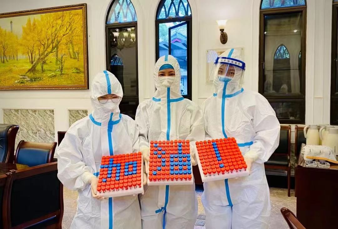 在日常診療工作中,他們是海外歸國學者、碩博研究生、優(yōu)秀青年醫(yī)護,他們手中拿的是最精密的牙科器械,用的是復雜尖端的醫(yī)療設備。而在抗擊疫情的戰(zhàn)場中,他們只有一個身份——逆行者。他們拿起手中的拭子,以最耐心的態(tài)度、嫻熟的技術、專業(yè)的操作服務每一位轄區(qū)居民。盡管堅守工作崗位數(shù)個小時,雙手被防護服捂得發(fā)皺發(fā)白,雙眼被防護面罩的霧氣蒙蔽,醫(yī)護人員們仍毫無怨言,用責任心和愛心為居民撐起一把“防護傘”。