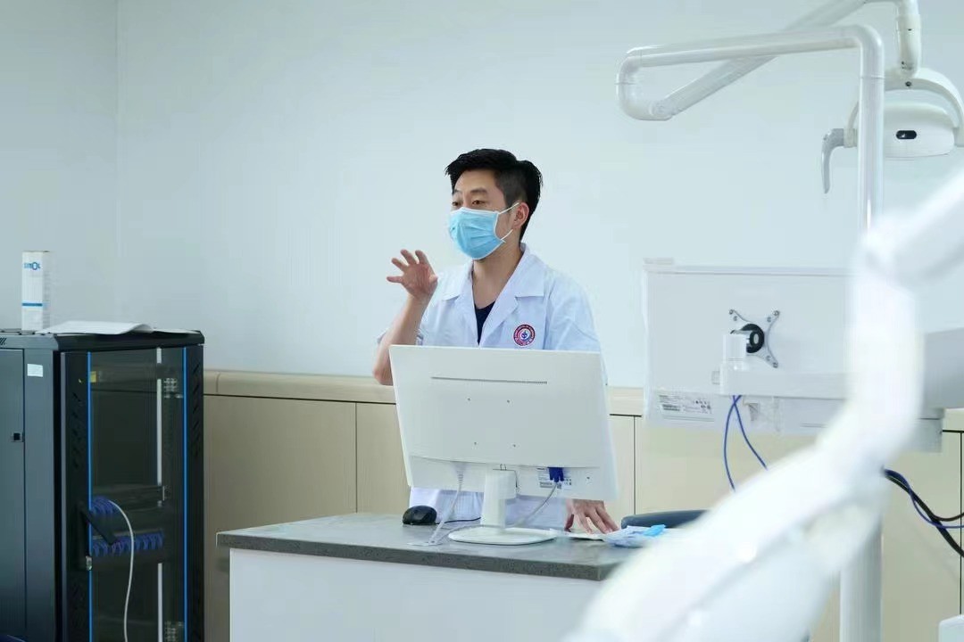 在實(shí)踐環(huán)節(jié),蔣禮醫(yī)生利用3D口內(nèi)掃描儀與同學(xué)們進(jìn)行了互動(dòng)體驗(yàn),并在虛擬仿真口腔技能訓(xùn)練機(jī)上實(shí)踐操作,用最新的教育教學(xué)手段,讓同學(xué)們對(duì)口腔醫(yī)學(xué)有了全新的認(rèn)識(shí)。