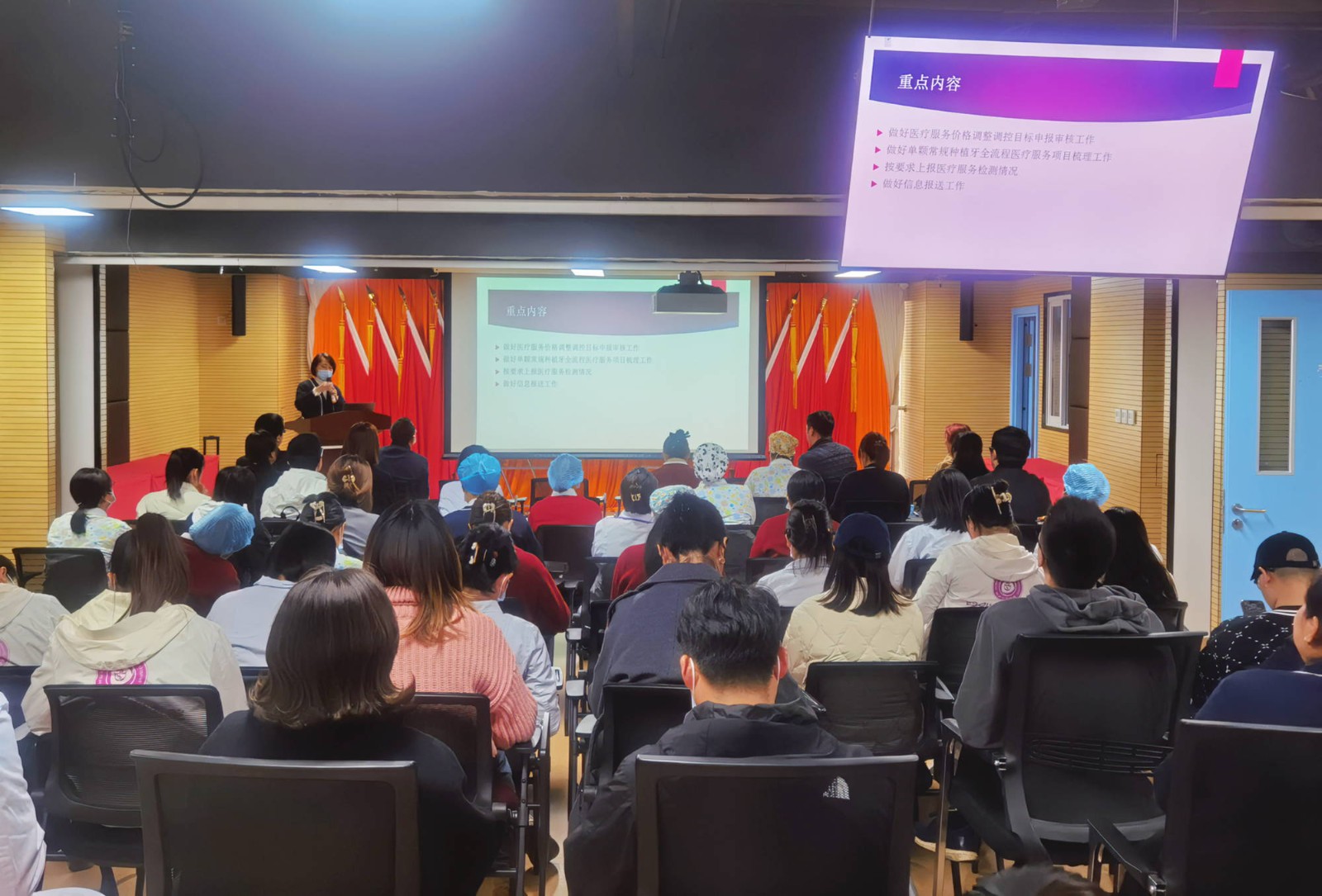 隨后,制度牽頭相關(guān)部門負(fù)責(zé)人結(jié)合業(yè)務(wù)板塊,分別對醫(yī)院的《醫(yī)療投訴管理辦法》《突發(fā)(重大)醫(yī)療糾紛事件預(yù)警機(jī)制及處置預(yù)案》《醫(yī)療事務(wù)、醫(yī)療糾紛處理及責(zé)任追究制度》《首診負(fù)責(zé)制度》《護(hù)理查對制度》《公務(wù)用車管理辦法》《備用金管理辦法》《員工請休假管理辦法》《價(jià)格管理委員會(huì)工作制度(修訂)》《信息安全管理制度》等內(nèi)容進(jìn)行了專題培訓(xùn)。